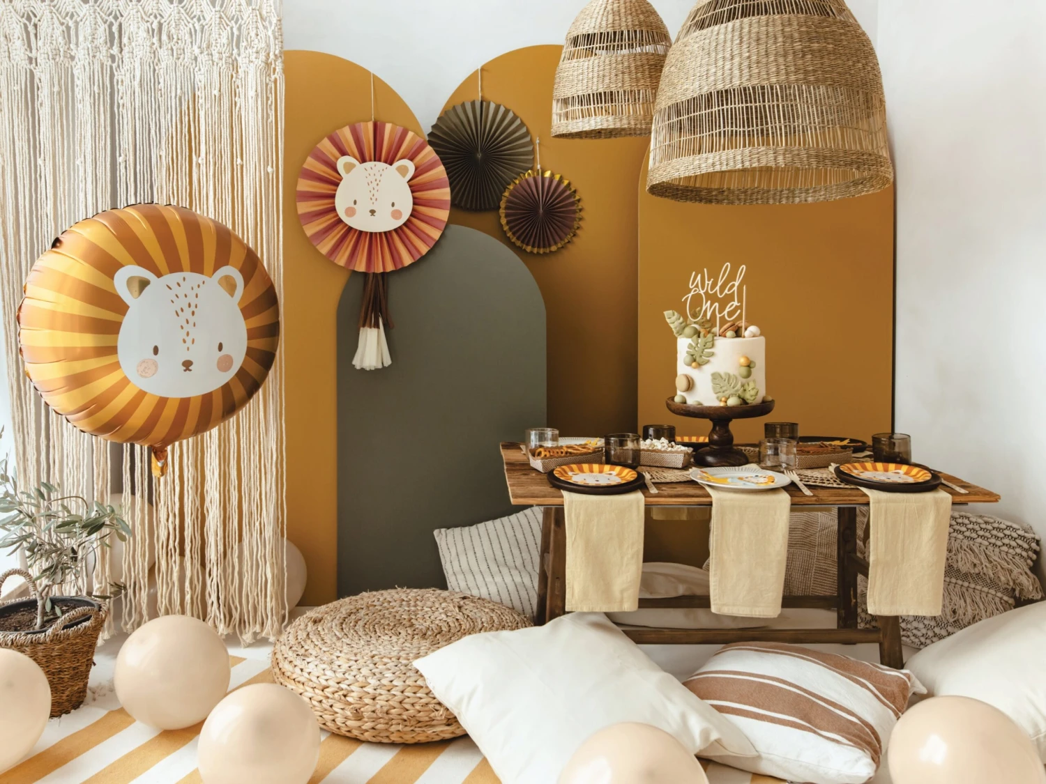 At your safari party, your little critters will enjoy this Leo the Lion Balloon. This round foil balloon resembles a friendly lion with gold foil accents and has brown and orange stripes for its mane. Fill this lion balloon with helium or air using the included straw, and add it to your jungle baby shower decorations. Use this adorable lion decoration to create a jungle scene for all the party animals at your child’s safari birthday party.