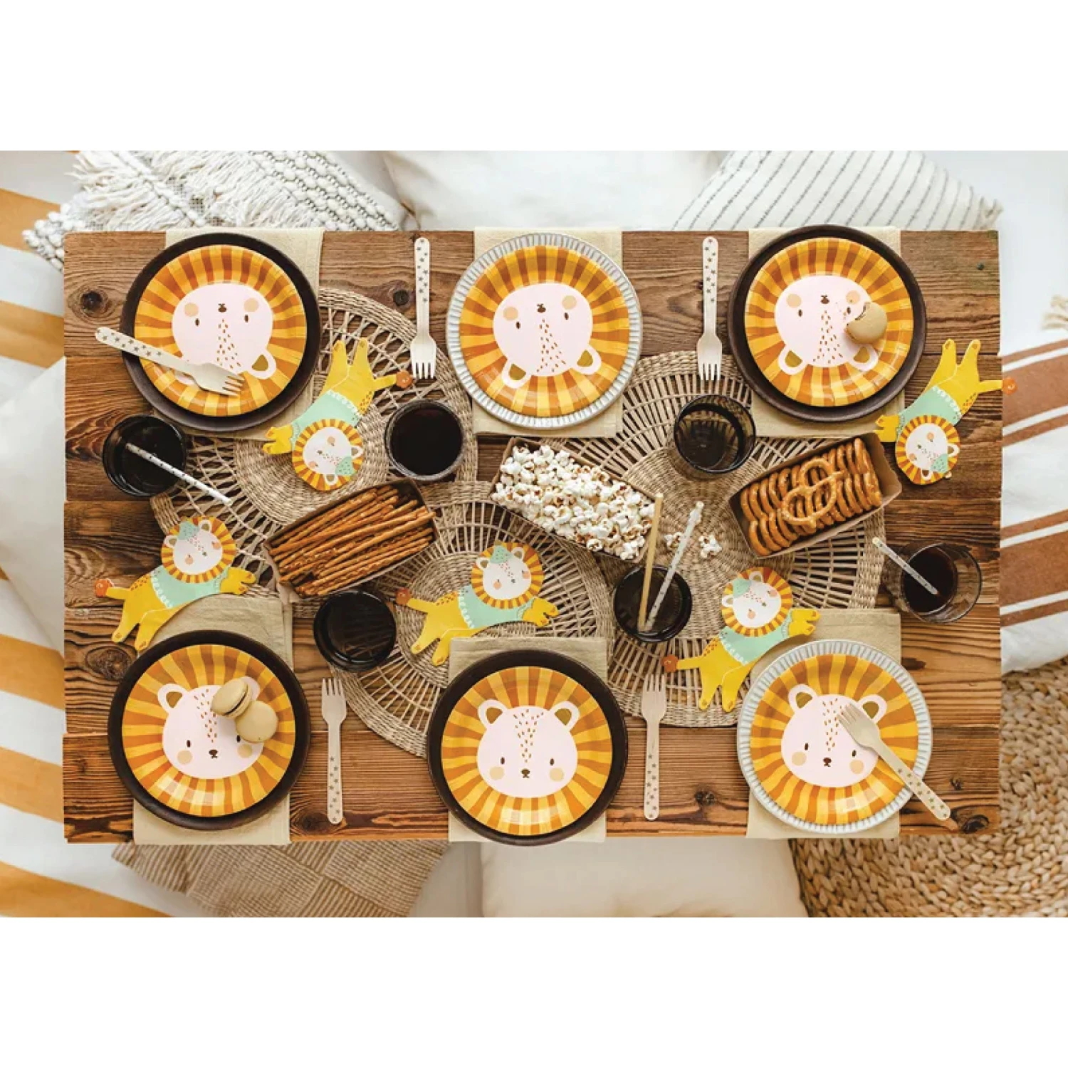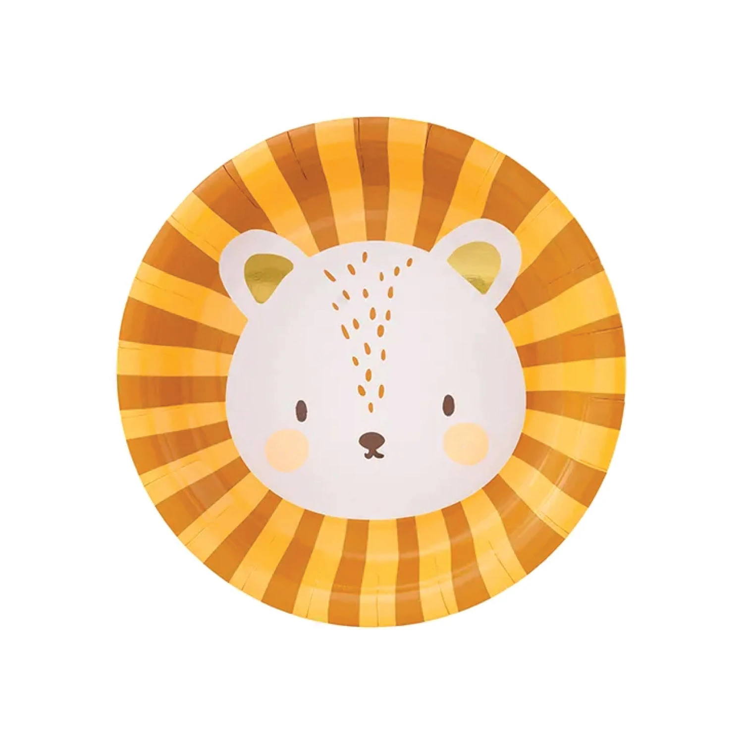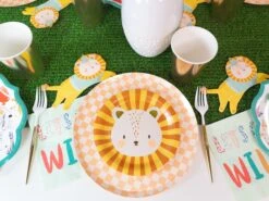 Let all the little critters feast on these Leo the Lion Dessert Plates at your safari party. This plate resembles the face of a friendly lion with gold foil accents and a striped border. Set these lion plates down at each place setting or stack them up on your dessert table so guests can help themselves to sweet treats. Create a jungle scene for all the party animals at your child’s safari birthday party or your jungle baby shower with these disposable plates.