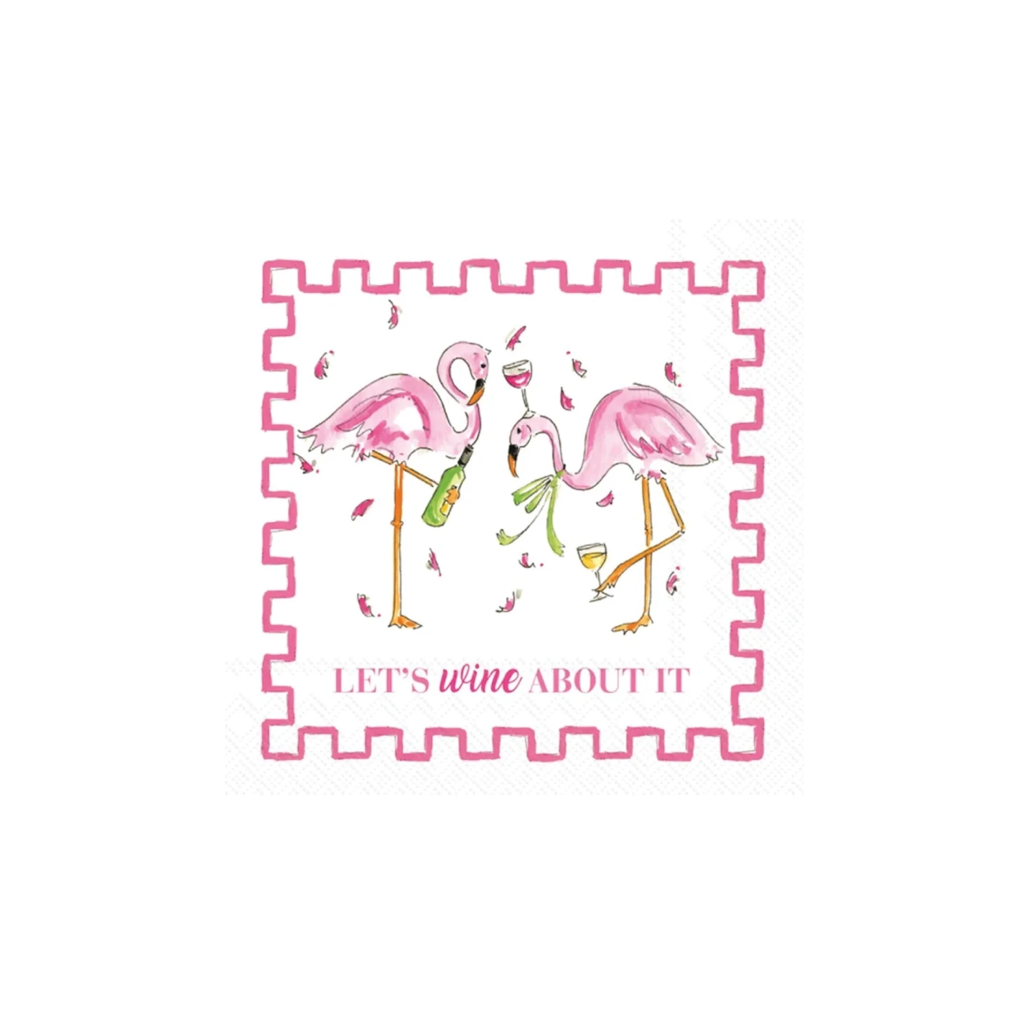 Add some playful humor to your next gathering with our Let’s Wine About It Dessert Napkins! These quirky napkins feature two flamingos sipping wine with the headline “Let’s Wine About It” and a pink border on a white background. These dessert napkins are perfect for indulging in your favorite desserts (and a glass of wine, we won’t judge). Whether you’re hosting a flamingo pool party, or celebrating the bride’s final flamingle bachelorette party, these flamingo napkins will add a playful and tropical vibe to your event.