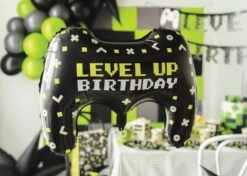 Press start on a video game birthday bash with a Level Up Birthday Controller Foil Balloon! Shaped like a sleek black video game controller, this foil balloon boasts a bold “Level Up Birthday” headline and white and green summary symbols, setting the perfect tone for your epic gaming party. Use the included straw to fill it with air easily so little gamers can hold it as a photo prop or inflate it with helium for an eye-catching addition to a gaming balloon bouquet. Set a new high score of excitement at their video game birthday bash, and let the young gamers revel in a new level unlocked!