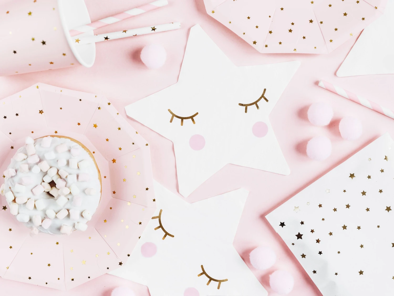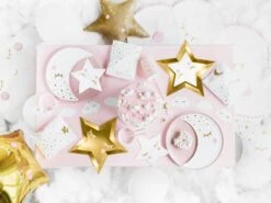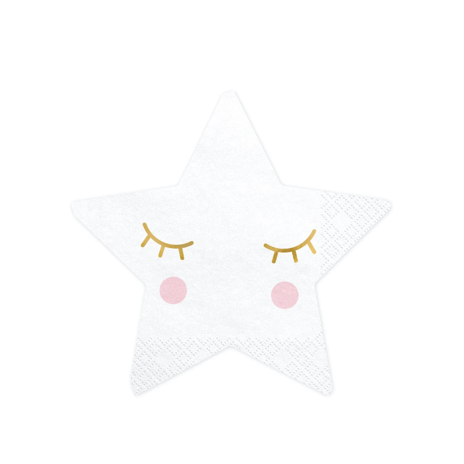 Throw the sweetest baby shower or birthday party with these Little Star Napkins. These white star-shaped napkins feature a sweet face with gold eyelashes and pink cheeks. The napkins are perfect for a Twinkle Twinkle Little Star Baby shower or child’s first birthday party.