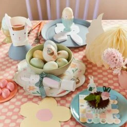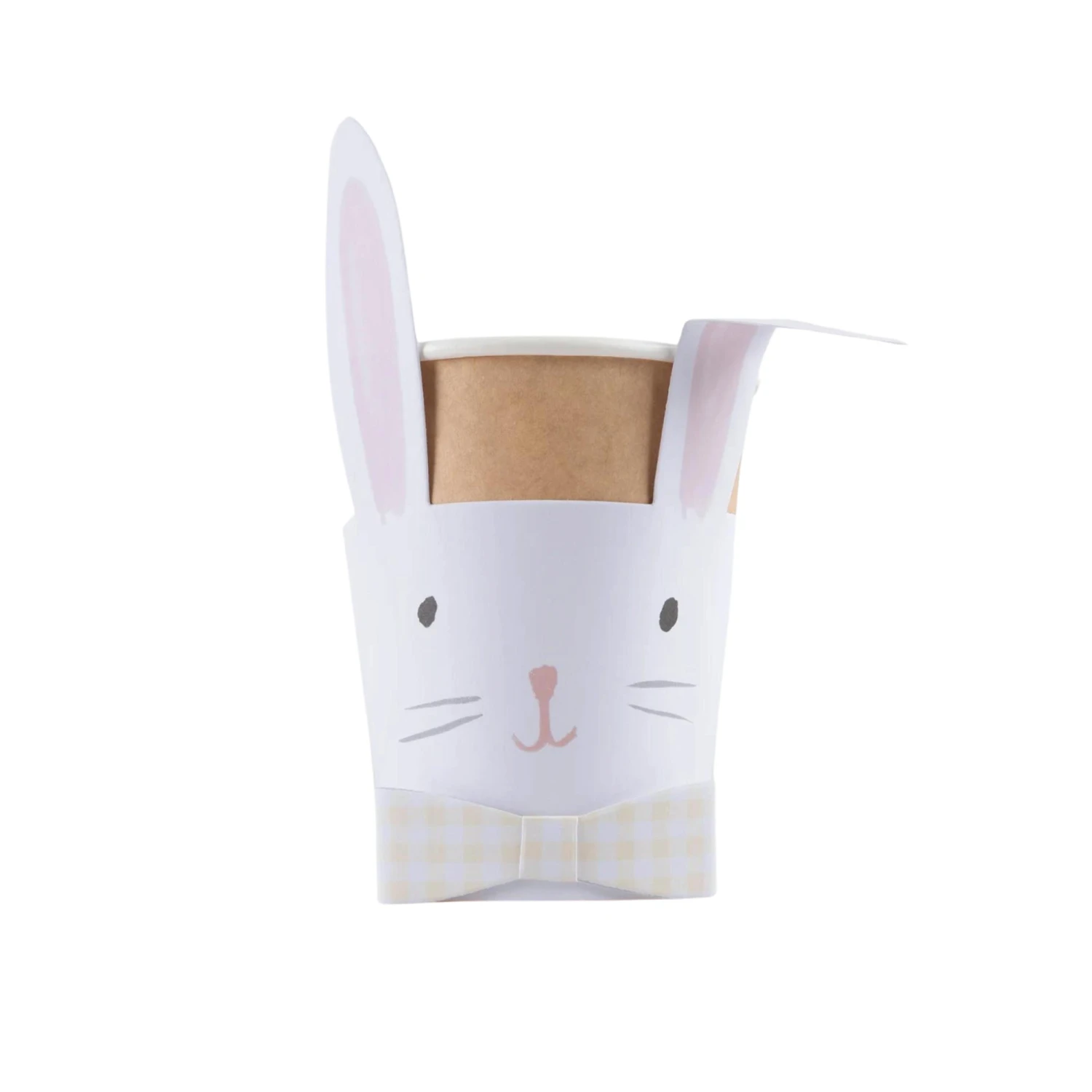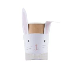 Hop on over and enjoy a sip in style at your Easter party with Gingham Easter Bunny Paper Cups. These kraft paper cups come adorned with four charming white bunny wraps, each sporting a dapper gingham bowtie in shades of blue, yellow, mint, or pink. Easily attach the wraps before use, transforming your ordinary cups into adorable bunny companions. Whether serving hot cocoa or a refreshing springtime punch, these trendy Easter cups are perfect for hot and cold beverages. So invite your little bunnies to hop on over, enjoy a refreshing drink, and cheers to a hoppy celebration!
