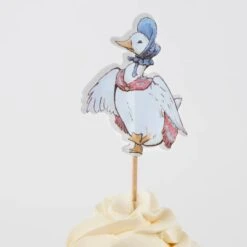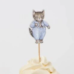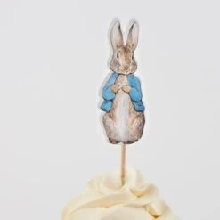 Bake up a garden of fun with this Peter Rabbit™ Cupcake Decorating Kit! This decorating kit includes cupcake toppers adorned with cutouts of flowers, Peter Rabbit, Benjamin Bunny, Tom the Kitten, and Jemima Puddle-duck attached to wooden picks, which are complemented by paper cupcake liners featuring a green gingham pattern. Baking and decorating cupcakes have never been more delightful—follow the easy instructions included in the kit. Whether it’s a Peter Rabbit baby shower, a first birthday party, or an Easter gathering, this cupcake kit brings Beatrix Potter’s timeless charm to your dessert table. So, hop to it and make your cupcakes the star of the garden party!