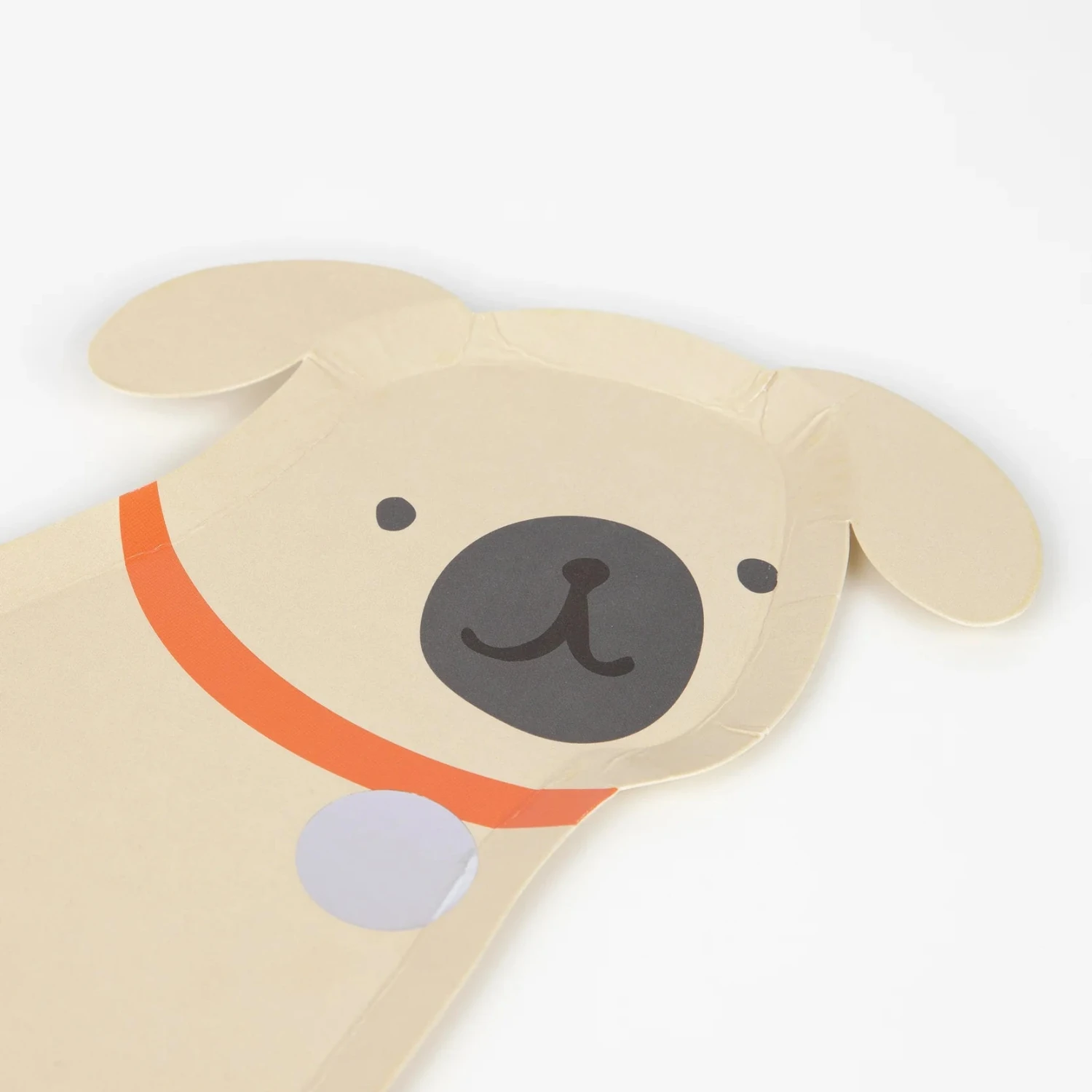 Get ready to (bow) wow your party guests with these Pug Lunch Plates! Shaped like a playful dog, these adorable paper plates resemble a tan pug wearing a bright red collar and a silver foil dog tag. Set these disposable plates on the table so your canine-loving cuties can chow down at any pawesome puppy birthday celebration. Whether you’re celebrating your pup or little one’s first birthday, a dog birthday theme will be full of tail-wagging fun and joy with this puppy pawty decoration!Â