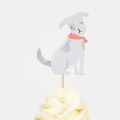 Get ready to treat your pups to cupcakes decorated with this Puppy Cupcake Decorating Kit! This woof-derful cupcake kit includes six topper designs of charming dog breeds attached to wooden picks complemented by paper cupcake liners in two blue patterns. Baking and decorating cupcakes have never been easier—follow the instructions included in the kit. Whether throwing a dog pawty for your furry friend or celebrating your little pup’s first birthday, this kit adds canine cuteness to your dessert table!