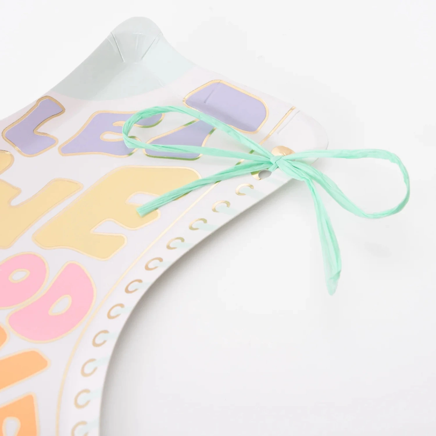 Get ready to roll with these Roller Skate Dessert Plates! Shaped like roller skates with a “Let the good times roll” headline, these die-cute plates are a blast from the past with pastel colors and gold foil detailing, complete with a green raffia bow mimicking laces. Perfect for serving delicious desserts and snacks, these disposable plates make every bite as delightful as a disco dance. Whether it’s a roller skating party or a groovy birthday bash, these retro plates are a fun and quirky way to roll into a memorable celebration!