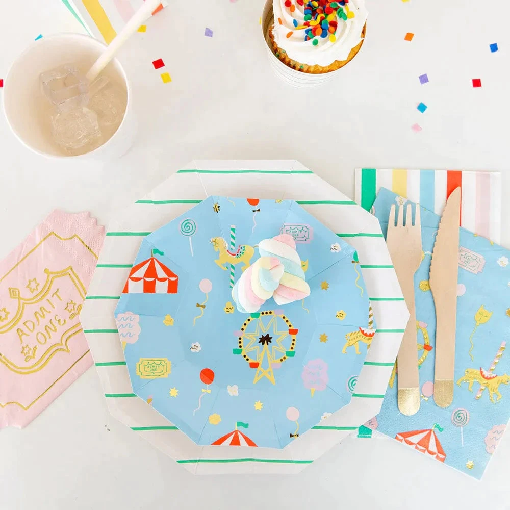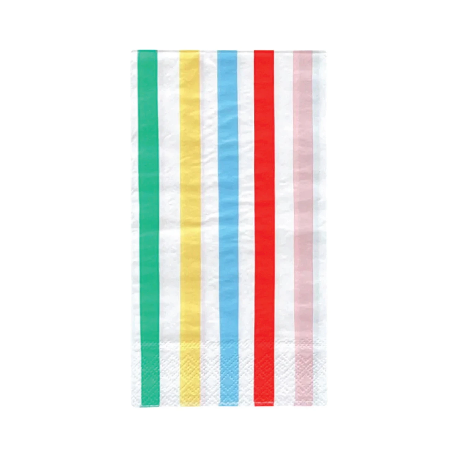 Add a vibrant stripe of style to your gatherings with Multicolored Striped Paper Guest Towels. These large paper napkins showcase vertical stripes in various colors, including green, yellow, blue, red, and pink, set against a crisp white background. Perfect for elevating any occasion, from birthdays to showers, these versatile dinner napkins offer practicality and a pop of color to your table setting. Whether used for wiping hands or serving alongside drinks and appetizers, these rainbow-striped napkins are an easy way to infuse a dose of fun into your event while keeping things neat and tidy for your guests to enjoy.