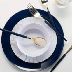 Match your fancy nautical decorations with Navy & Gold Rim Plastic Dinner Plates on the tables. These navy heavy-duty plastic plates have a metallic gold trim. With a beautiful glossy finish, this premium plastic tableware looks like fine china and suits any sophisticated occasion. Set one down at each place setting or stack them up on your buffet table so guests can help themselves at your “nauti” bachelorette party or nautical baby shower. In addition, their large size makes them great for various occasions, including holiday parties, birthdays, and weddings.