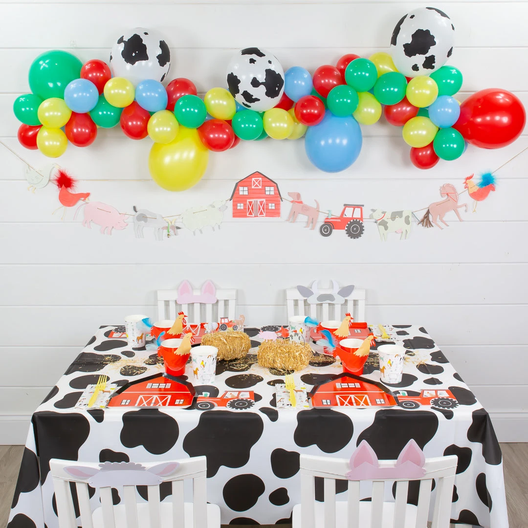 Decorate for your little farmer’s barnyard birthday bash with this On the Farm Cow Print Balloon Garland Kit. Organic balloon garlands add the perfect touch to any special occasion and will leave everyone at your celebration amazed and talking about it for days! Our easy to assemble balloon garland is a must-have kit when decorating your venue as it has everything you need to create a fabulous looking setup! Our DIY balloon garlands can be used to create a mini balloon arch above a dessert table or entryway, a balloon banner, a table runner, and more.