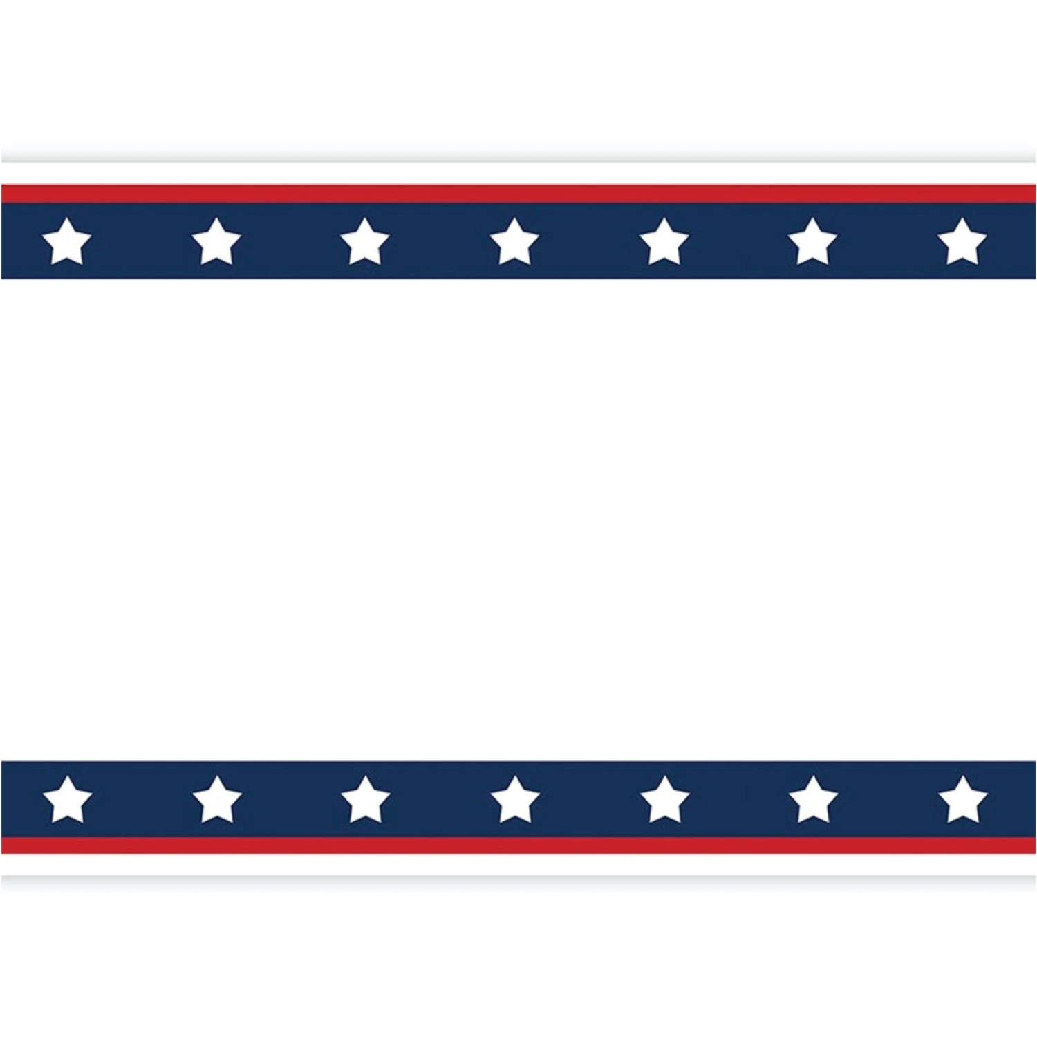 Transform your plain table into a bold and daring display of patriotism with our Patriotic Paper Table Runner! This paper table runner features a white background with a red and blue striped with white stars border on each long side. Not only is this table runner stylish, but it’s also functional. Made from high-quality paper, it’s sturdy enough to handle all the spills and thrills of your patriotic party. And at 25 feet long, it’s the perfect size to run down the center of your table and create a delightful focal point. Use this coastal decoration at a 4th of July party, Memorial Day pool party, a summer bbq picnic, or a nautical bachelorette party.