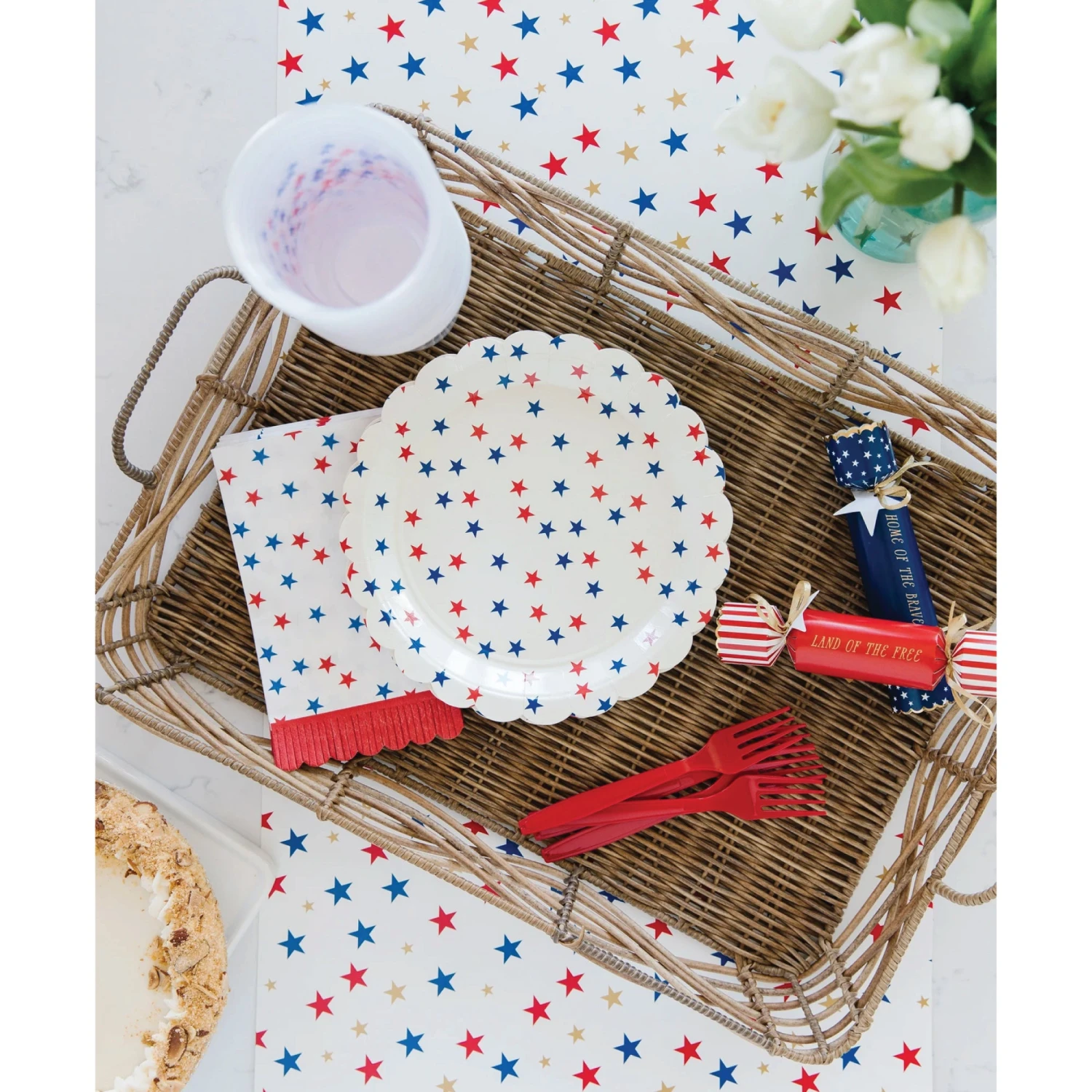 Create an awe-inspiring patriotic feel when you set the table with these Patriotic Stars Scallop Fringe Guest Towels. These paper napkins feature red and blue stars on a white background with red scalloped and fringe bottom. Â Place these guest towels in the bathroom or use them as dinner napkins at your summer BBQ. Pair these paper guest towels with our other red, white and blue party goods as the perfect picnic set for your Independence Day outings. Whether you are celebrating Memorial Day, the 4th of July, or a Military homecoming, these patriotic napkins will undoubtedly make an excellent addition to your party!Â