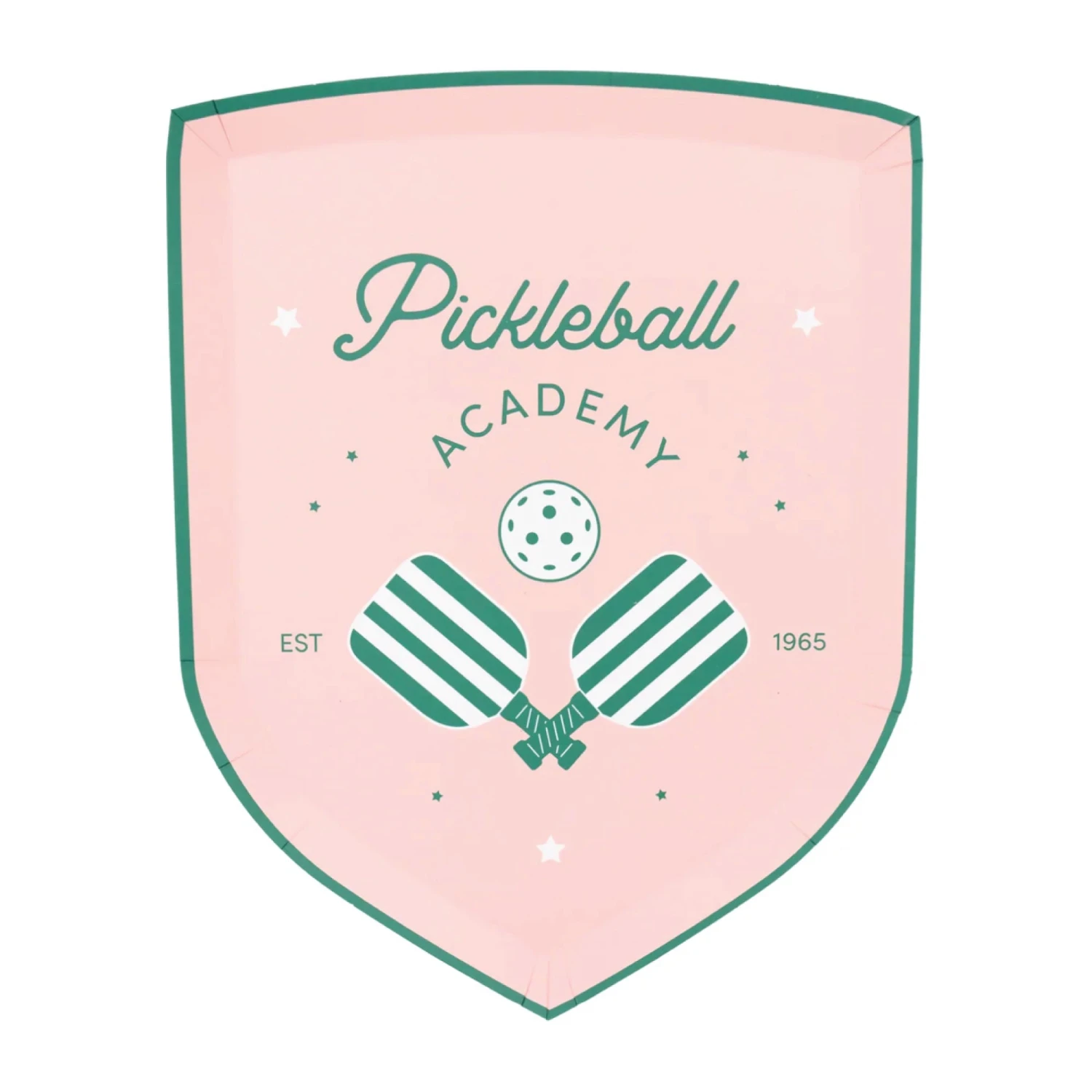 Get ready to dink and dine with these Pickleball Academy Dessert Plates! Inspired by the birth of this beloved sport in 1965, these badge-shaped plates feature a green pickleball emblem on a light pink background with green trim. Perfect for indulging in slices of cake or appetizers, these disposable plates are a surefire way to score points with your guests. Whether hosting a pickleball-themed party, a girl’s day out, or a sports birthday bash, these pickleball plates will serve a sweet time!