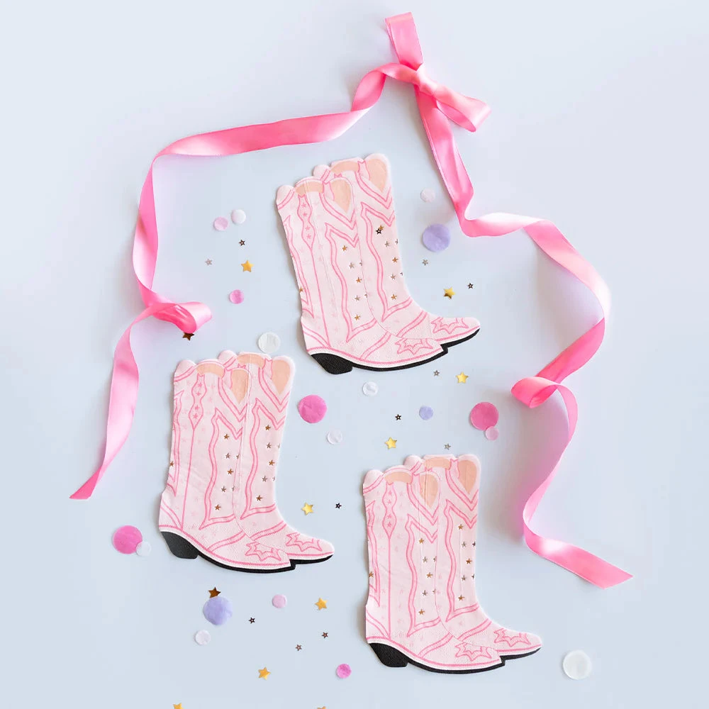 Saddle up, cowgirls, and kick your cowgirl party up a notch with Pink Cowgirl Boots Lunch Napkins, where every wipe is as stylish as a two-step! Shaped like cowgirl boots, these paper napkins are adorned with varying shades of pink details and sprinkled with silver and gold foil stars for that extra touch of rodeo glamour. Wrangle up messes and spills with these disposable napkins, ensuring every rodeo queen’s hands stay clean and every little hiccup gets booted away. Perfect for a saddle-up birthday bash, a Kentucky Derby party, a hoedown bachelorette party, or even a disco cowgirl party where the boots are made for dancing!