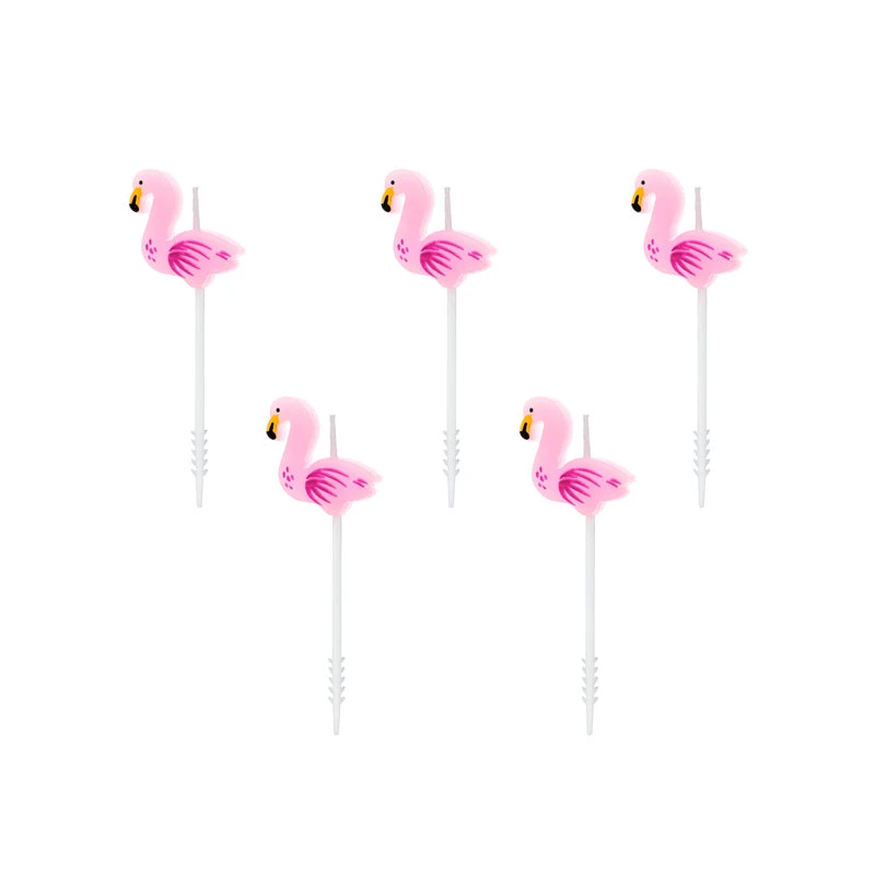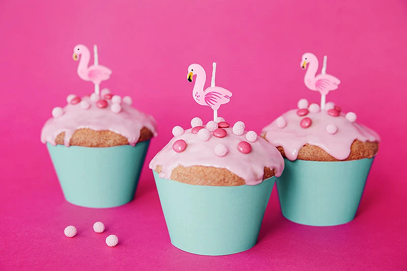 Pink Flamingo Party Candles. These toothpick candles feature pink wax flamingos attached to sturdy plastic toothpicks. They look great on top of birthday cake, brownies, or cupcakes at your child’s tropical birthday party or tropical bridal shower!