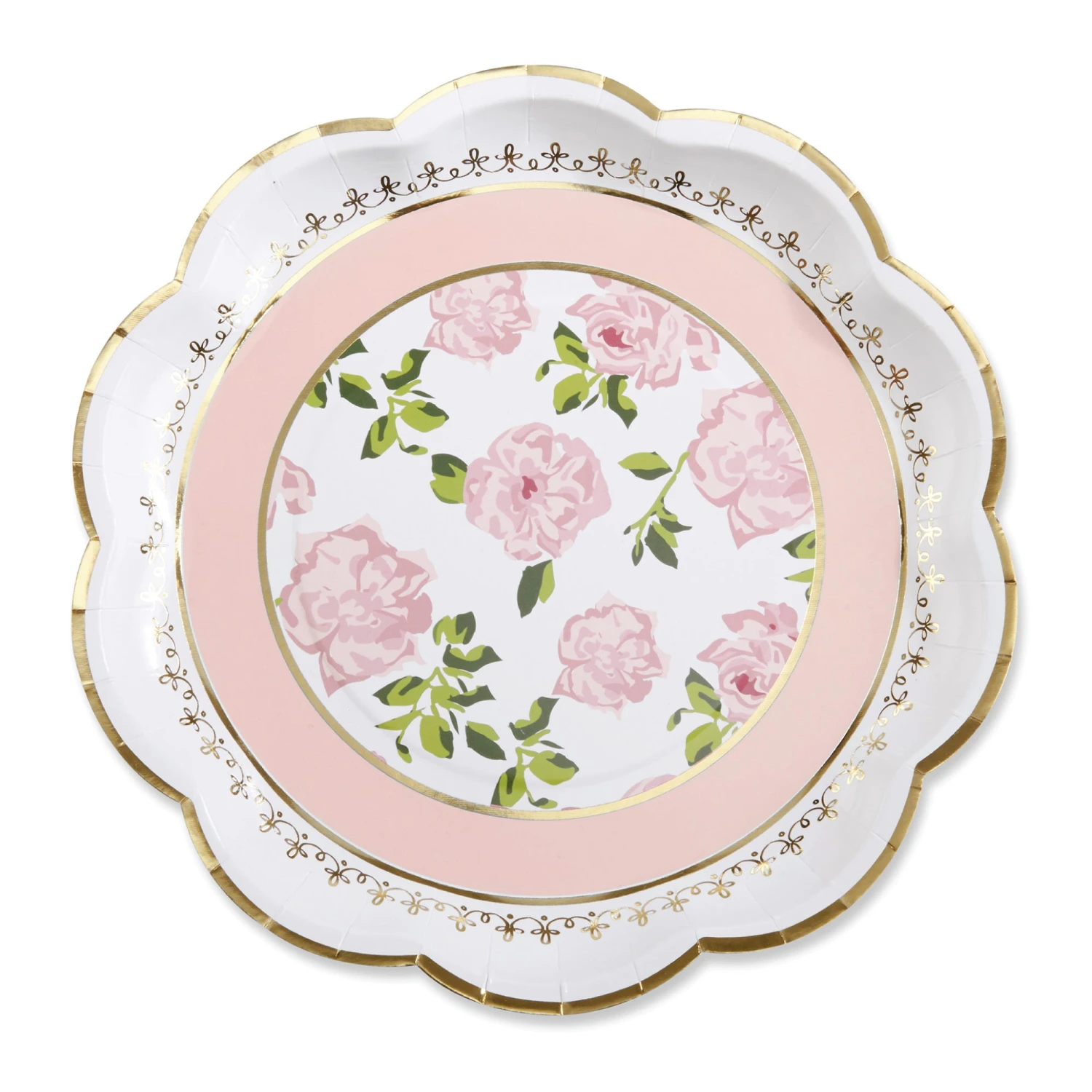 Add a touch of elegant shine to par-tea with these beautiful Pink Floral Tea Time Lunch Plates. These paper plates have a scalloped edge with gold foil trim, a pink floral design in the center of the plate with a light pink border, and delicate gold foil detailing. Place these floral garden party plates out at each place setting or put a stack of them on the buffet table at your floral baby shower. Perfect for everything from tea party birthday parties to floral bridal showers and Easter celebrations, our floral party plates make your place settings even more beautiful!