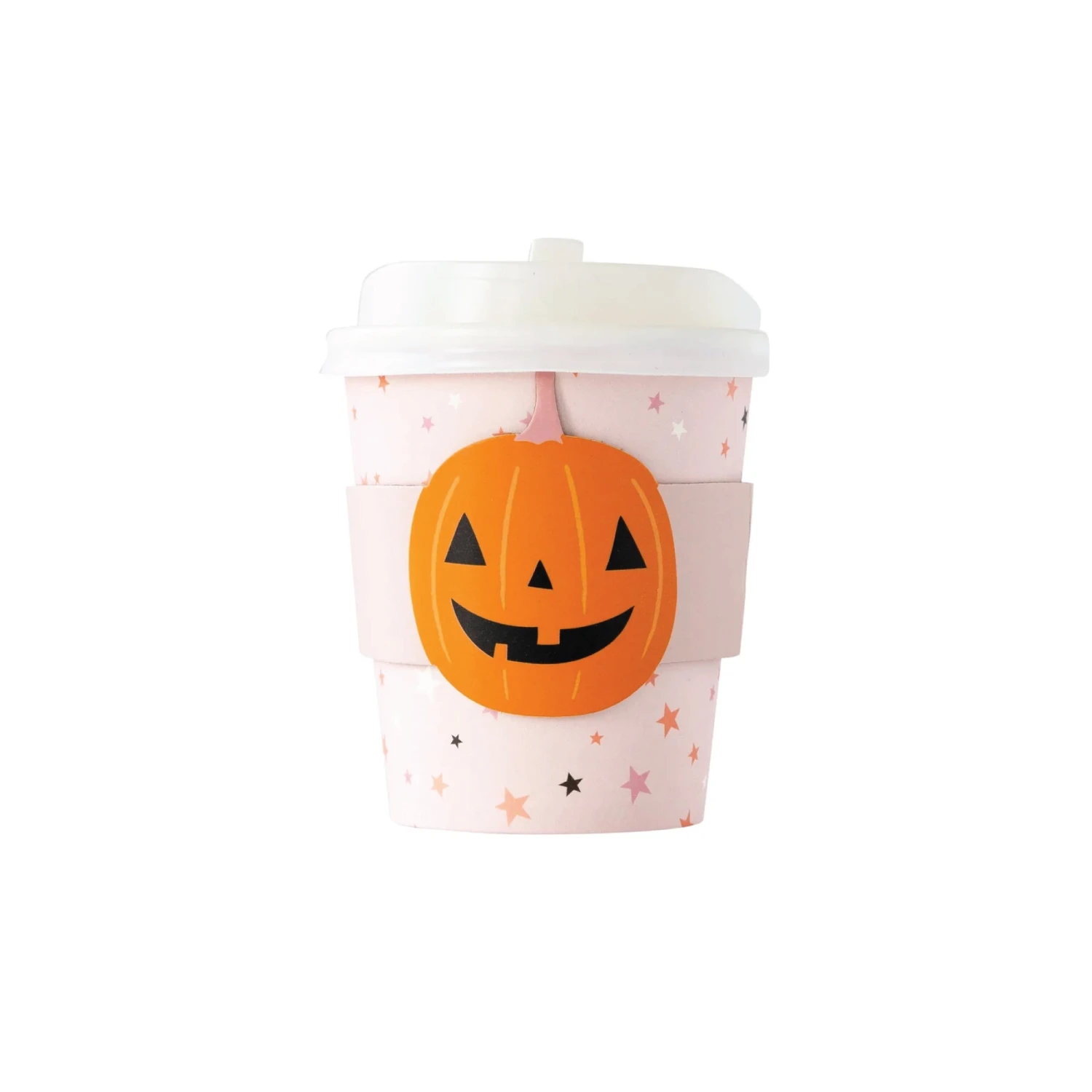 Make your mornings feel boo-tiful this spooky season with these Pink Halloween Jack O’Lantern Mini Coffee Cups & Lids. These small paper cups showcase delicate stars on a pink background, accompanied by pink sleeves embellished with orange Jack O’Lanterns, and white plastic lids. Use these mini coffee cups to serve hot cocoa, apple cider, or any other bewitching brew, ensuring your guests stay cozy and refreshed while out trick-or-treating on Halloween night. The included lids and sleeves allow you to serve beverages mess-free, allowing your guests to carry their drinks around while enjoying the spooktacular Halloween birthday fun. Get ready to brew up a fantastic time with these Halloween coffee cups, making your celebration a truly memorable and magical affair!