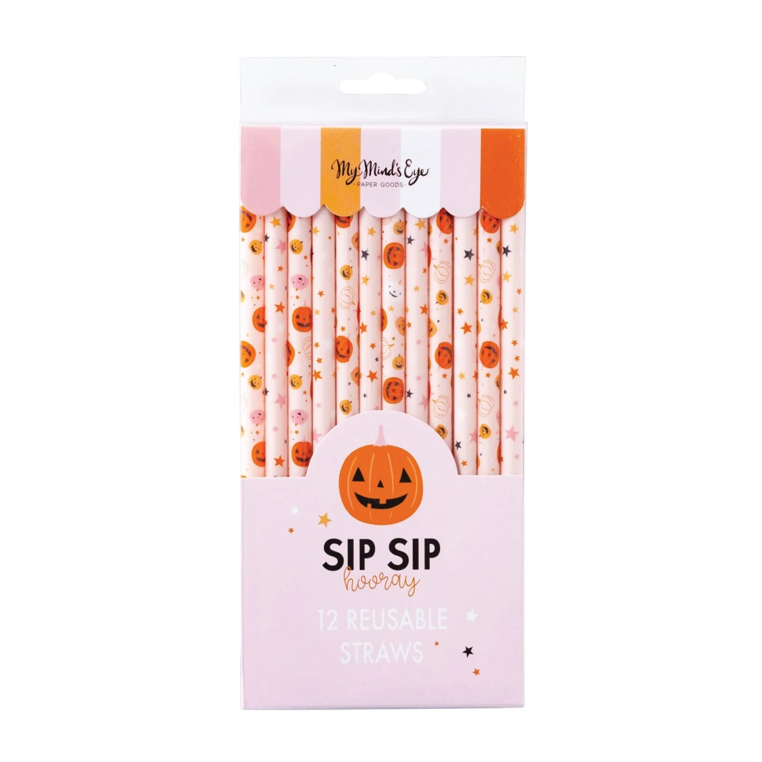 Sip in style and spookiness with our Pink Halloween Jack O’Lantern Plastic Straws! These plastic straws feature charming orange, pink, and white Jack O’Lanterns and dainty stars on a pink background. Whether serving up sinister potions, ghostly milkshakes, or creepy cocktails, these Halloween straws will add a playful twist to your beverages. Not only are they eco-friendly and reusable, but they also ensure a mess-free and enjoyable sipping experience for all your guests. So, bring some extra enchantment to your child’s spooktacular Halloween birthday or ghoul gang celebration, and let your drinks ooze with the Halloween spirit with pink and orange pumpkin staws.