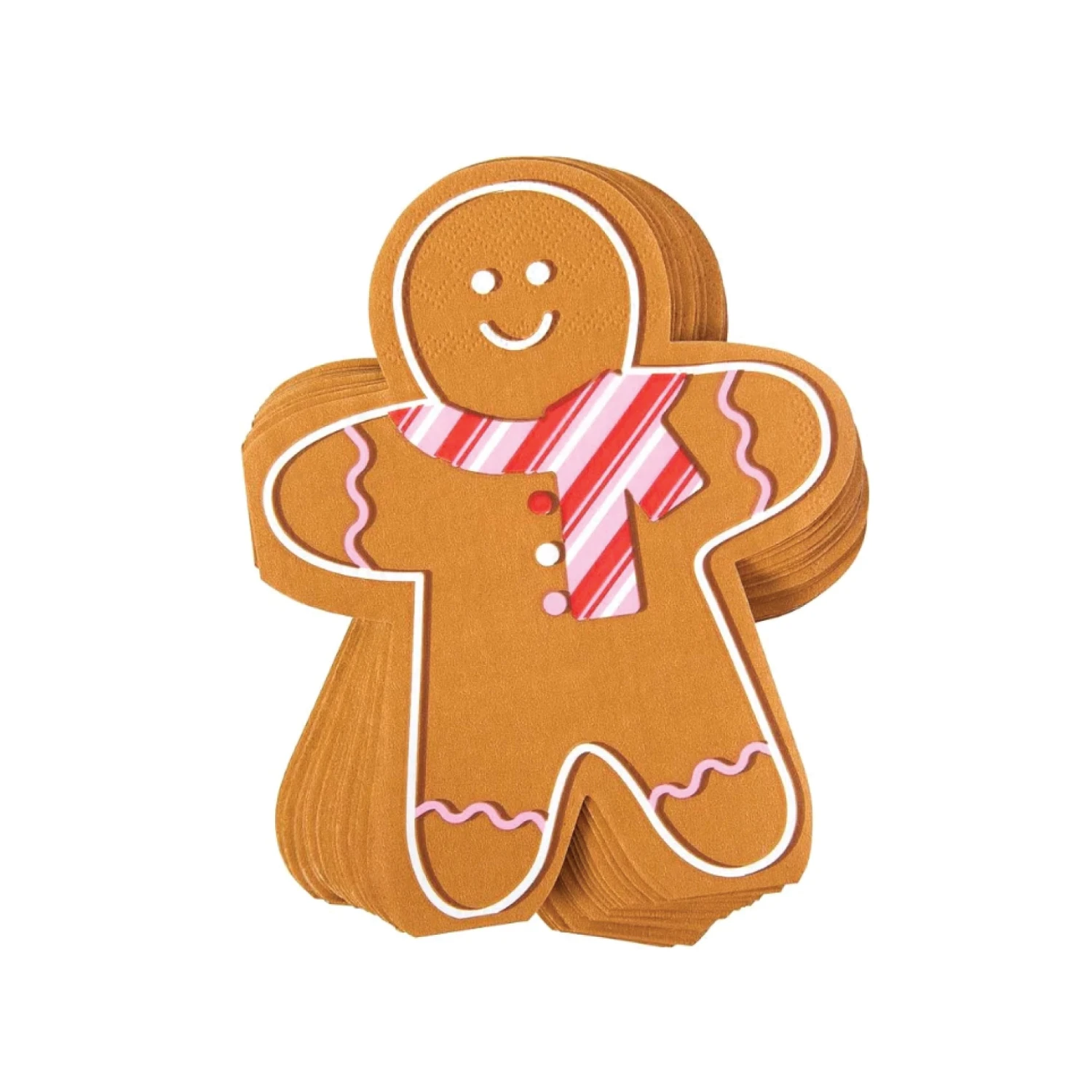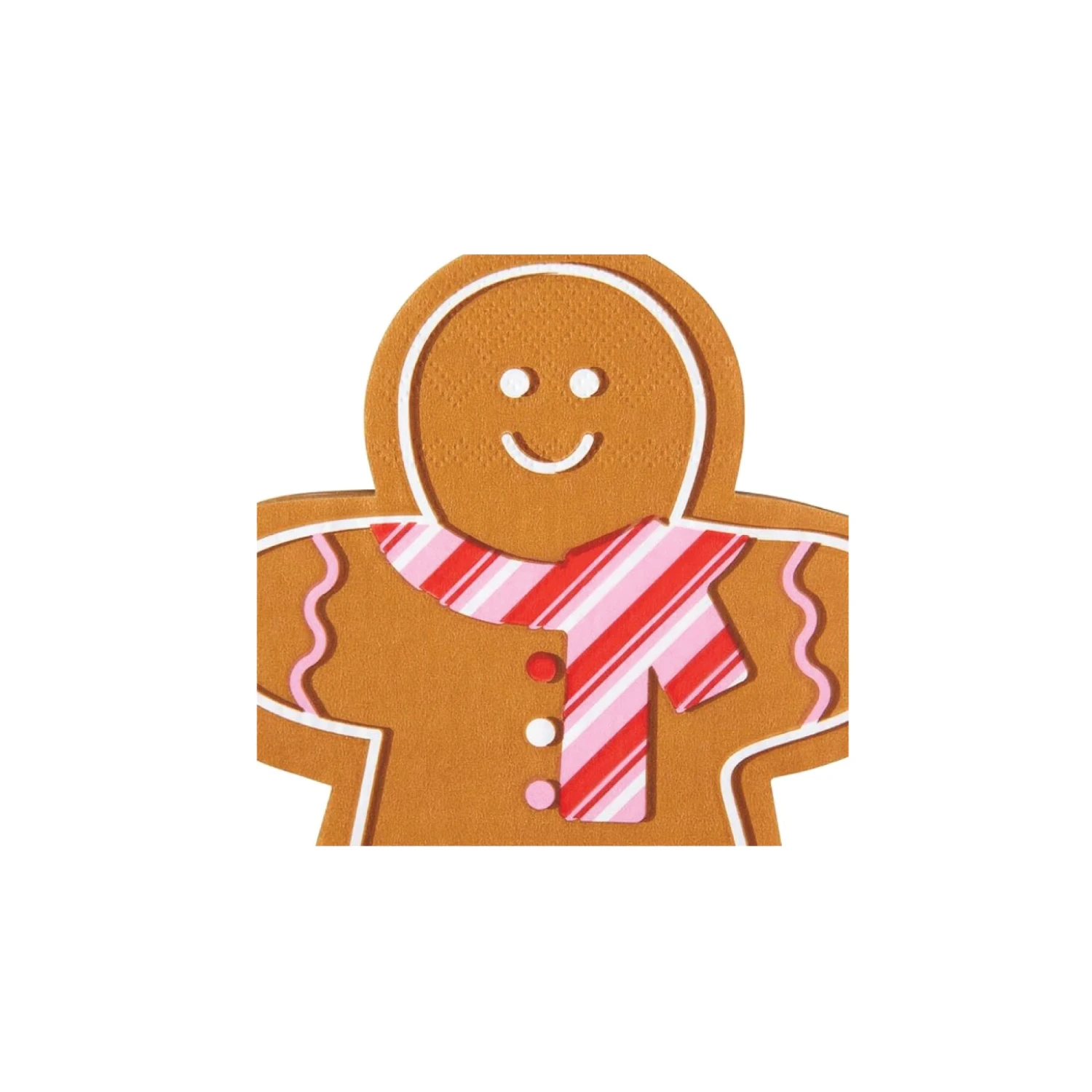 Serve up delicious sweets at your cookie exchange with these Cute Gingerbread Man Dessert Napkins! Shaped like an adorable gingerbread man against a warm light brown backdrop, these whimsical napkins are adorned with pink swirls on the arms and legs, a friendly face with a happy smile, and a pink, red, and white scarf and summarys. Perfect for a kid’s Christmas party or a lively gingerbread house decorating party, these napkins are ideal for serving delectable treats or tidying up any accidental frosting mishaps. Whether used to present mouthwatering desserts or to add a playful touch to your table setting, set the stage for a heartwarming celebration that captures the spirit of the holiday season.