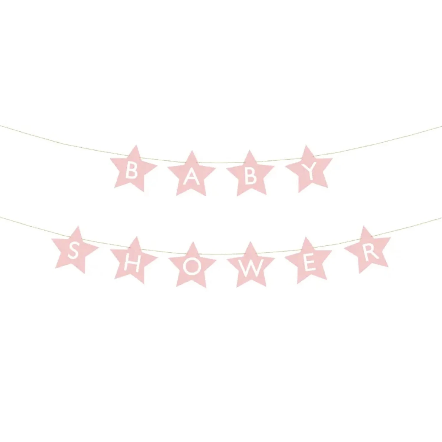The sky’s the limit when you decorate your girl’s baby shower with a Pink Star Baby Shower Banner. This die-cut paper banner features light pink star cutouts with white letters on each star to spell out “Baby Shower.” Hang this baby shower banner on a wall or even mount it to a table to enhance the decor with the attached gold twine. Use this banner in your baby shower photo backdrop to take photos with the mom-to-be. Finally, add this baby shower garland to your twinkle twinkle little star baby shower to celebrate your little one’s arrival.