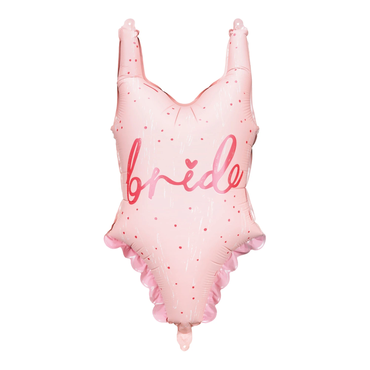 Celebrate the bride’s last splash with this Pink Swimsuit Bride Balloon at the bachelorette party! This giant foil balloon is designed to look like a light pink one-piece swimsuit with “Bride” written in pink cursive along the front. Fill this beach bachelorette party decoration with helium to add to a balloon bouquet centerpiece, or inflate this bachelorette balloon with air using the included straw to use it as a photo prop and strike a pose with the bride-to-be. Whether you’re celebrating the Future Mrs. with a pool party or on a tropical bachelorette weekend, this hen party balloon will be a hit for the team bride.Â