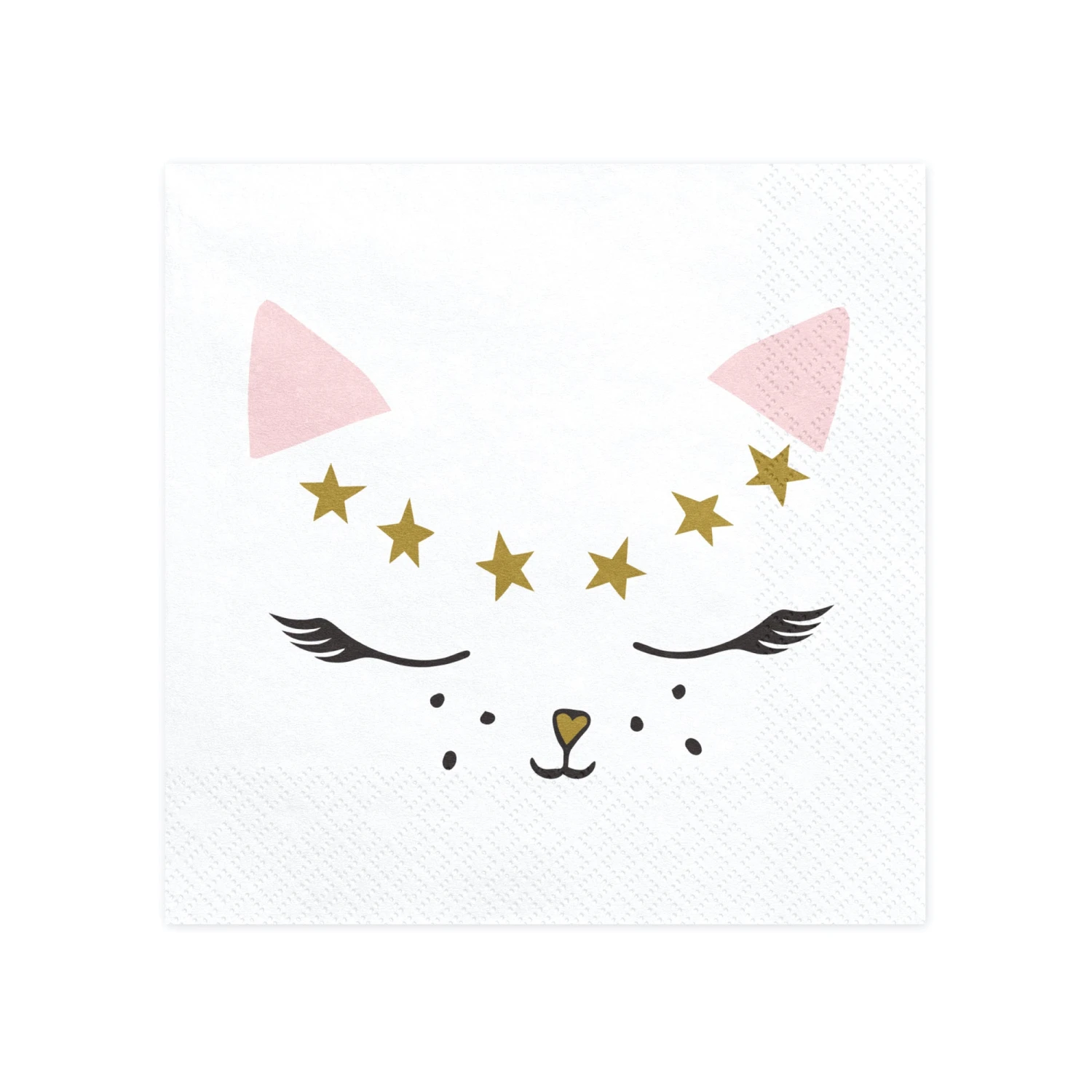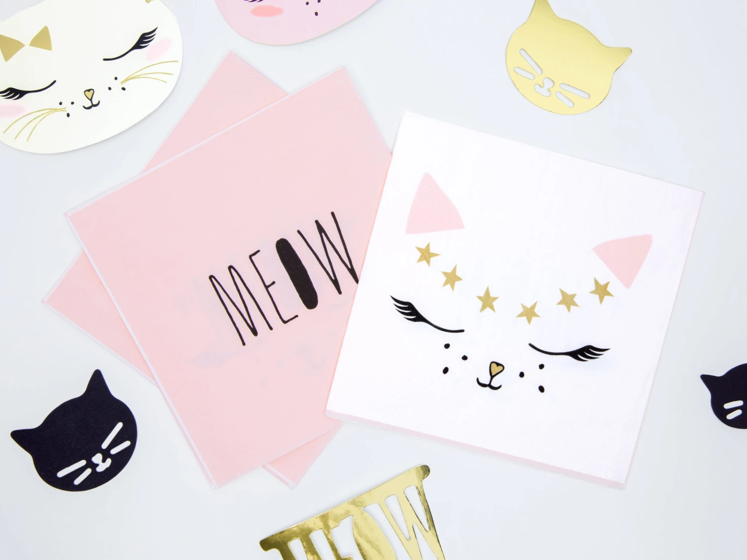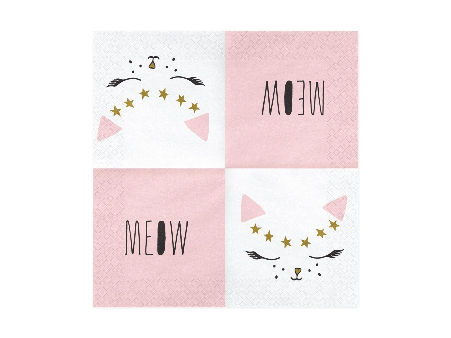 Set the table with these precious Kitty Cat Party Napkins! These cute cat face napkins with gold detail on one side and pink on the opposite side with the word MEOW. Use these napkins to wipe up milk spills from your little kittens.