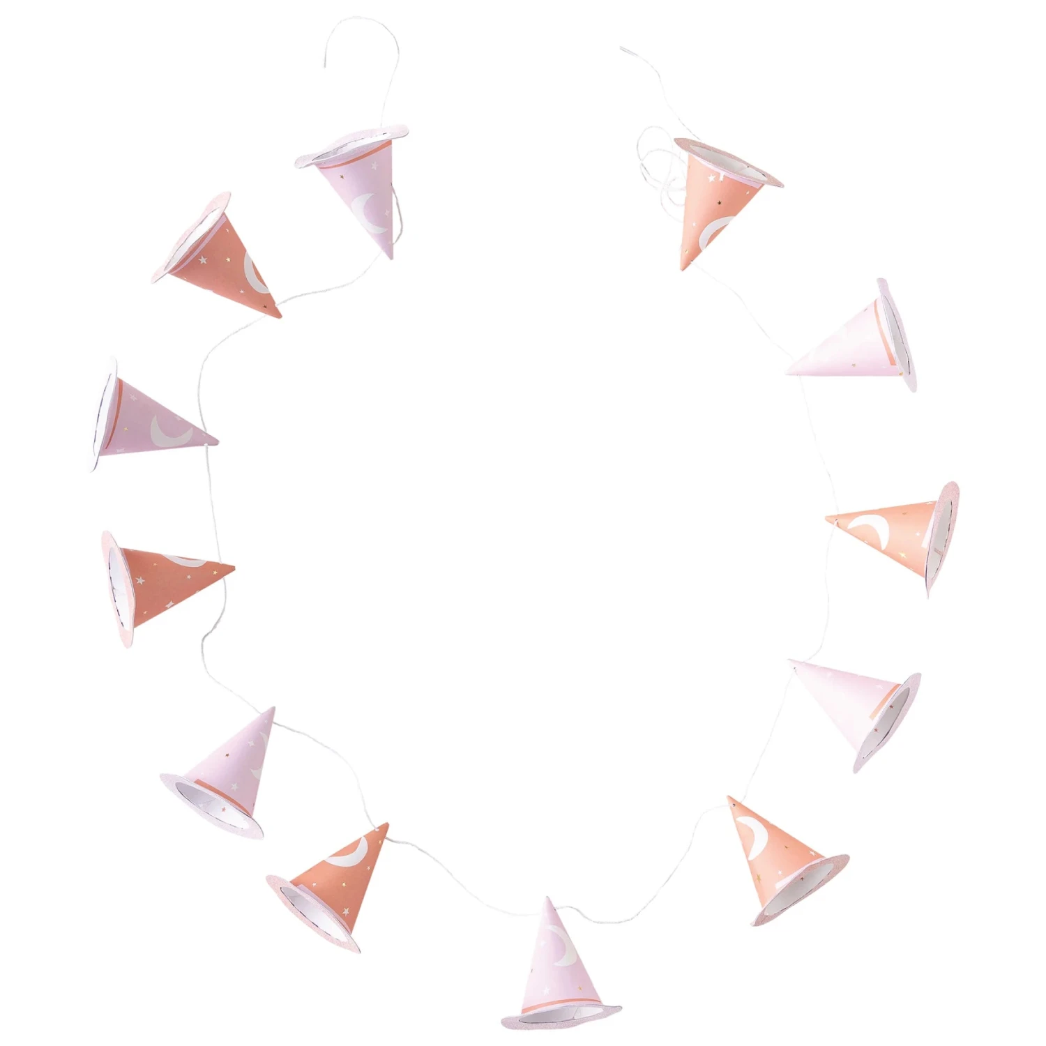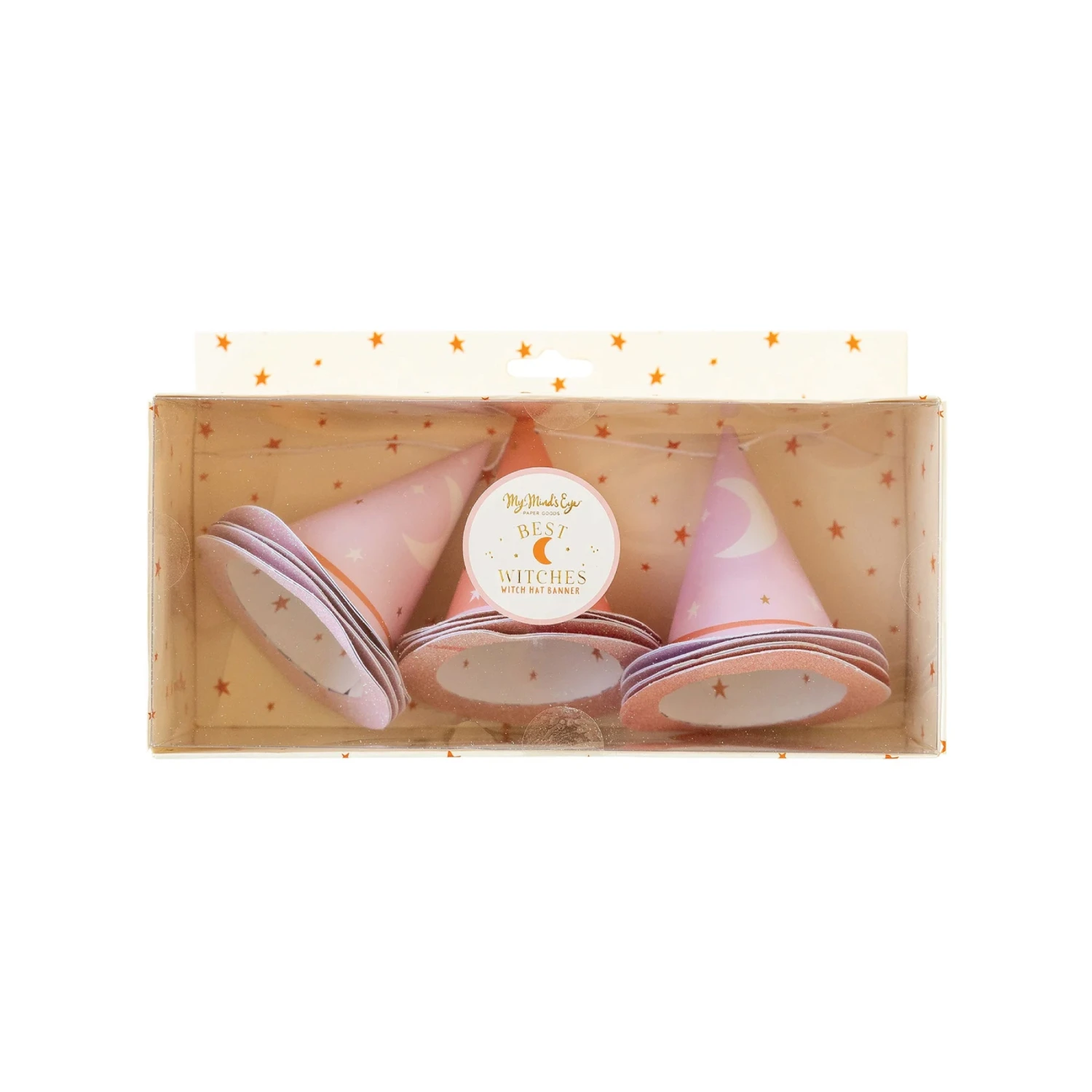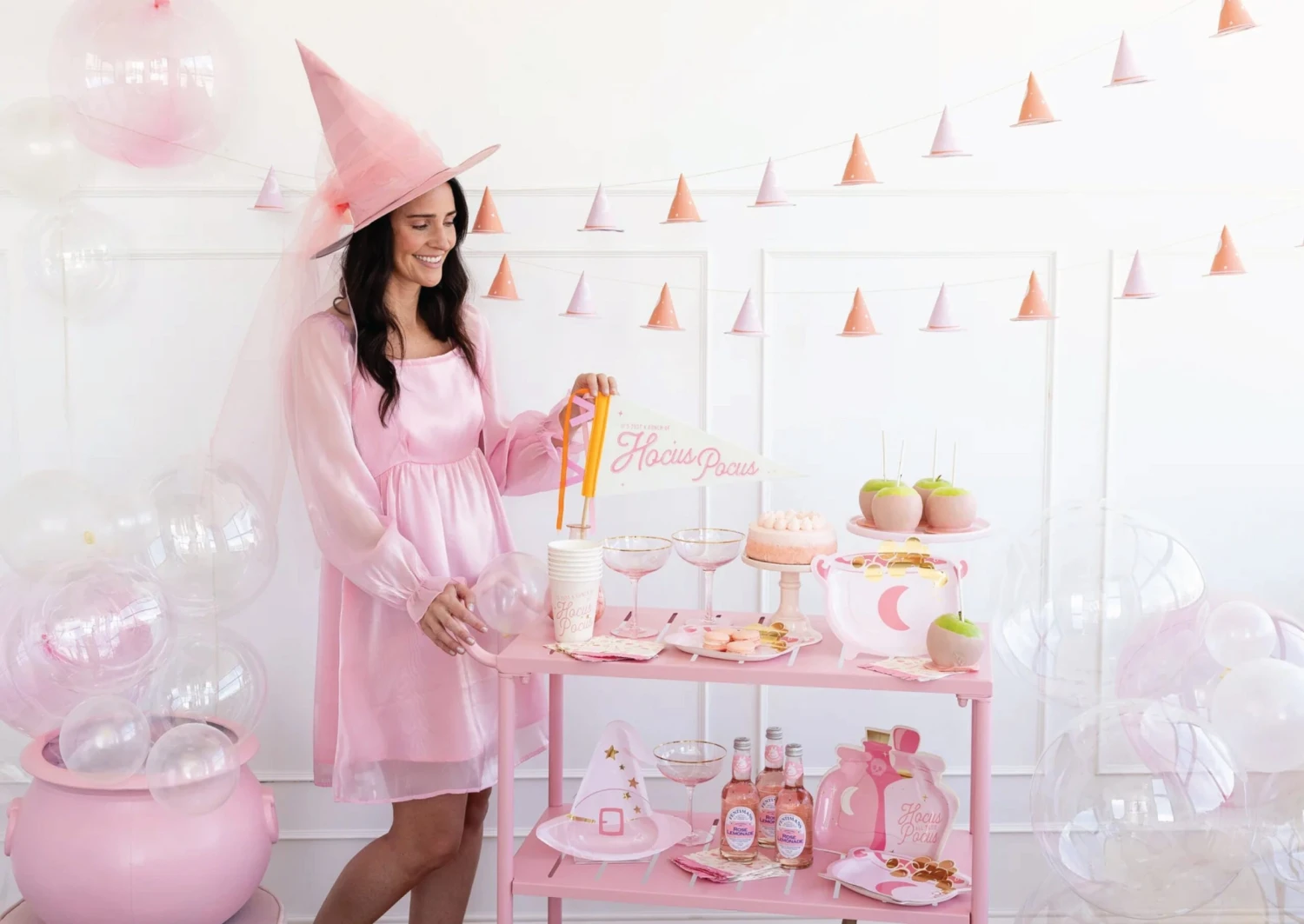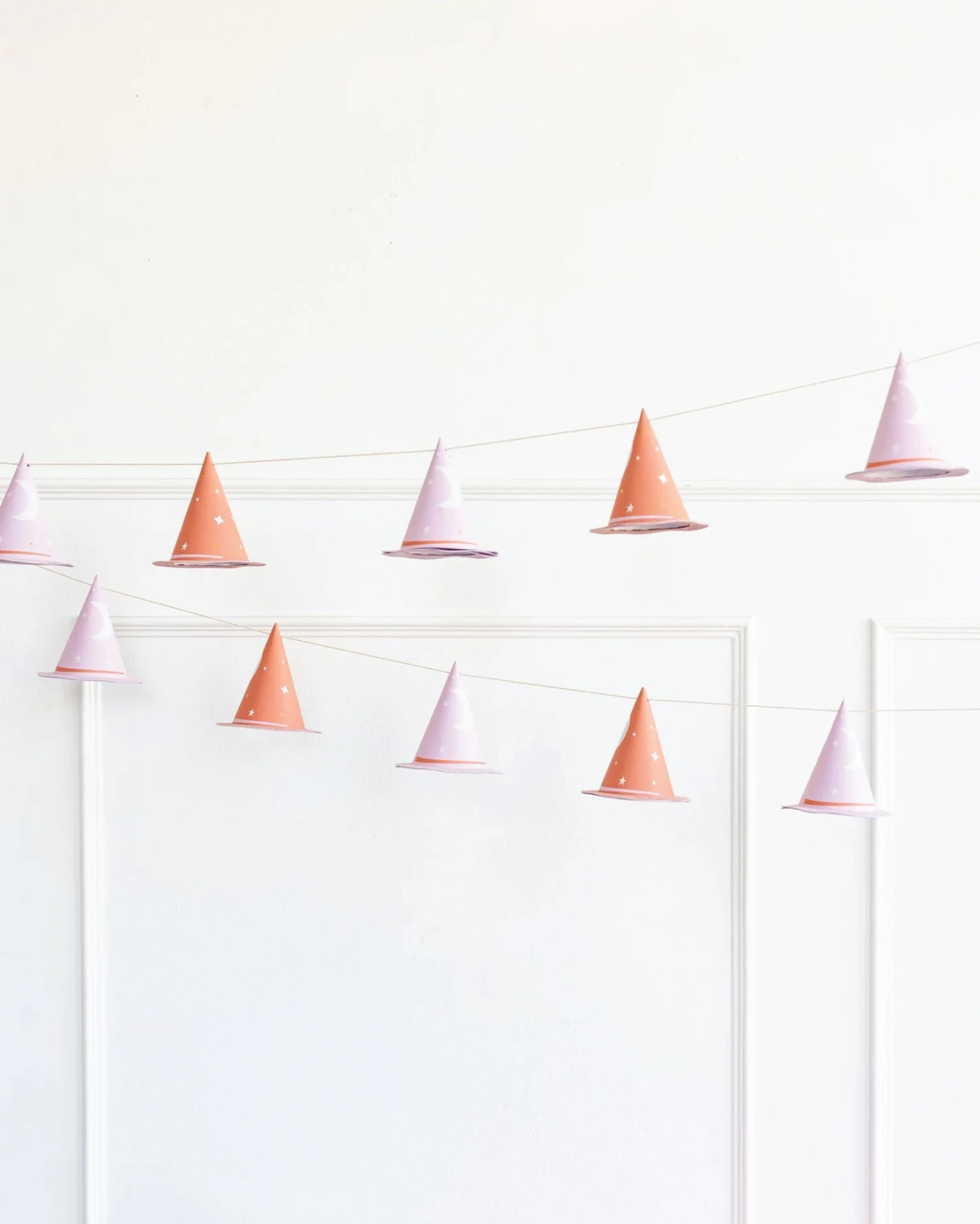Your Halloween party will be a bewitching success with this Pink Witch Hat Garland! This pink Halloween decoration comes pre-strung with twelve 3D witch hats, each brimming with charm and mischief. Hang this 6ft long banner above doorways, your party table, or a backdrop to add a touch of magic and charm to your spooky celebrations. Whether you’re hosting a spooky one birthday bash, a bachelorette party with your best witches, or a spooktacular soiree, this witch garland will have everyone under its spell!