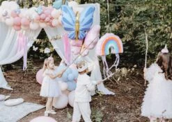 Add a touch of magic to your celebration with this Pull String Iridescent Rainbow Piñata! This foldable piñata assembles into a rainbow shape, featuring vibrant pastel stripes and shimmering iridescent foil strands that dangle from each edge for extra sparkle. A built-in hanging loop makes it easy to display, whether indoors or outside. Perfect for pastel rainbow or unicorn birthday parties, this piñata is a fun-filled activity for kids of all ages. Fill it with candy, confetti, or small party favors (not included), and let little ones take turns swinging with a pole or pulling the strings to reveal the surprise inside. It’s a whimsical and mess-free way to bring excitement to magical celebrations!