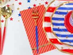 Eye-catching Red & White Striped Paper Guest Towels are the perfect everyday option that works great for any occasion. These large paper napkins feature white diagonal stripes on a red background with a gold foil accent along the bottom. Set a guest towel at each place setting so guests can stay clean while eating. Alternatively, use soft disposable guest towels in your kitchen, bathroom, or office to impress guests at your 4th of July BBQ, holiday Christmas gathering, or child’s birthday party!