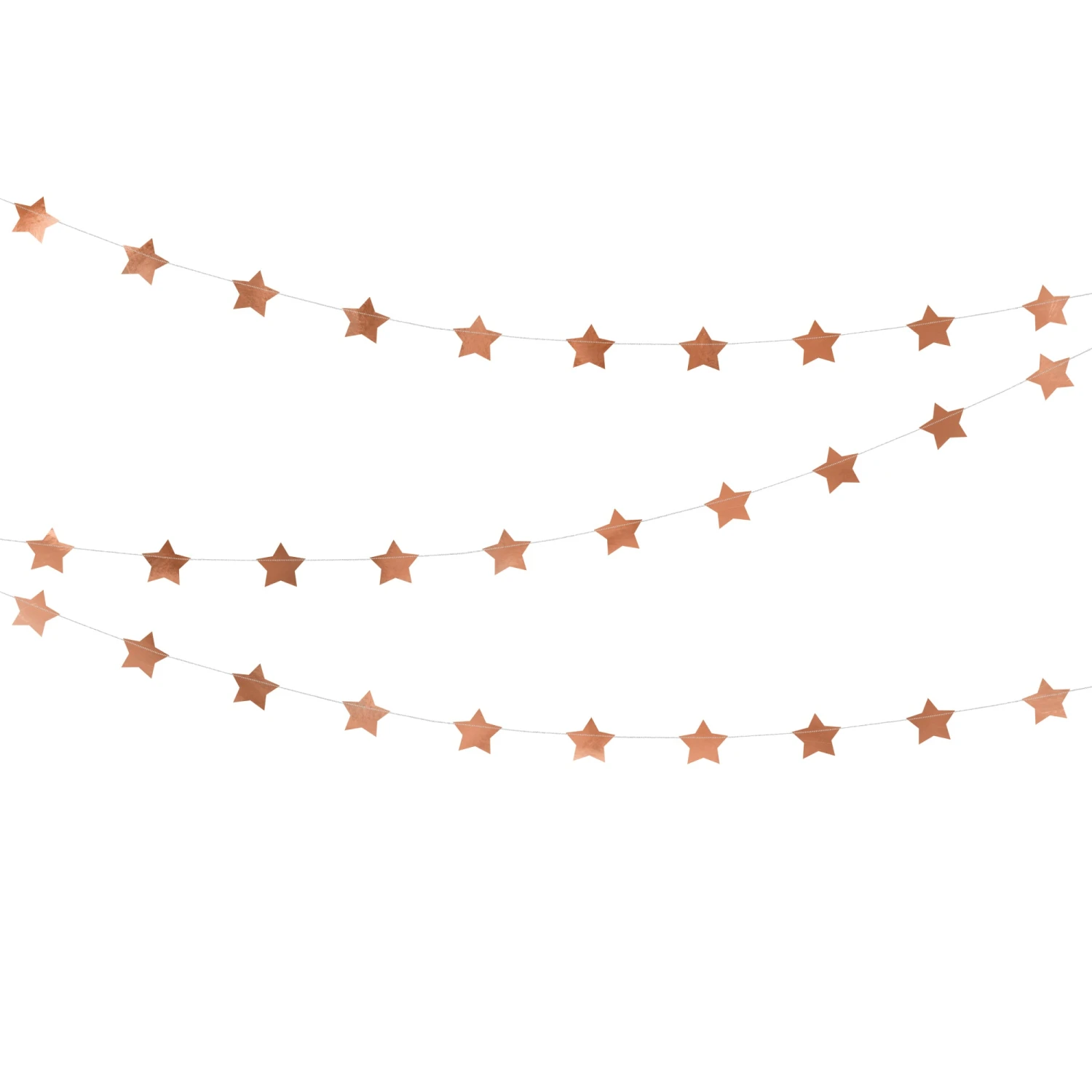 Add some sparkle and shine to your bridal shower or birthday party with this Rose Gold Star Garland. This metallic rose gold star banner is pre-stitched and ready to hang. Just add with party fans and other banners to create the perfect party backdrop.