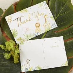 - Set of 20 thank you postcards, white envelopes, invitations, books for baby cards, and diaper raffle cards