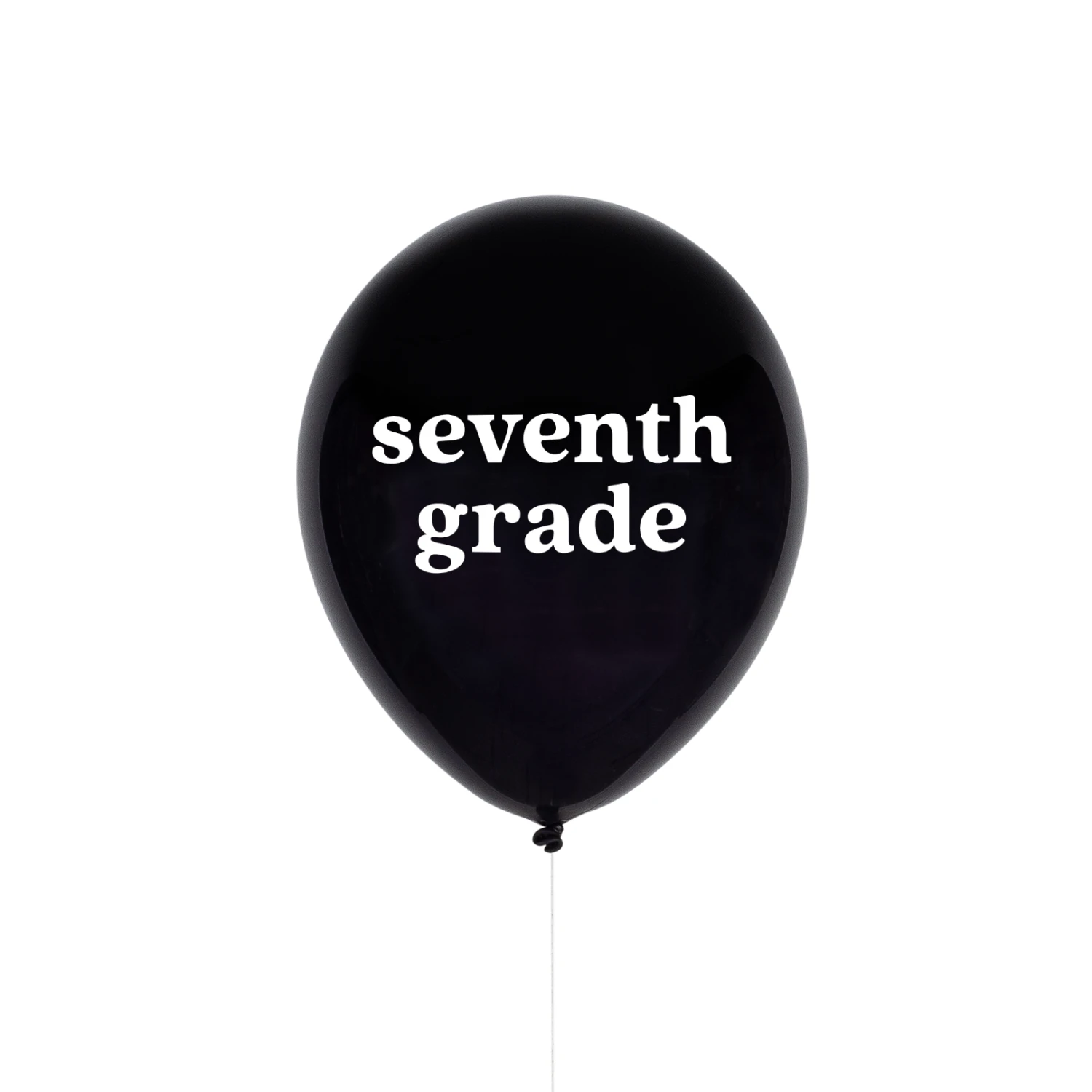 Take pictures of your little one on the first day of school posing with a Seventh Grade School Balloon! This black party balloon features a white “seventh grade” headline. Your little one will be excited about school when you throw a back to school party. Capture the best back-to-school pictures of them with this grade school balloon! Tie it to a balloon weight as part of your back to school party decor or mix it with your child’s school colors for a fun school spirit balloon bouquet!