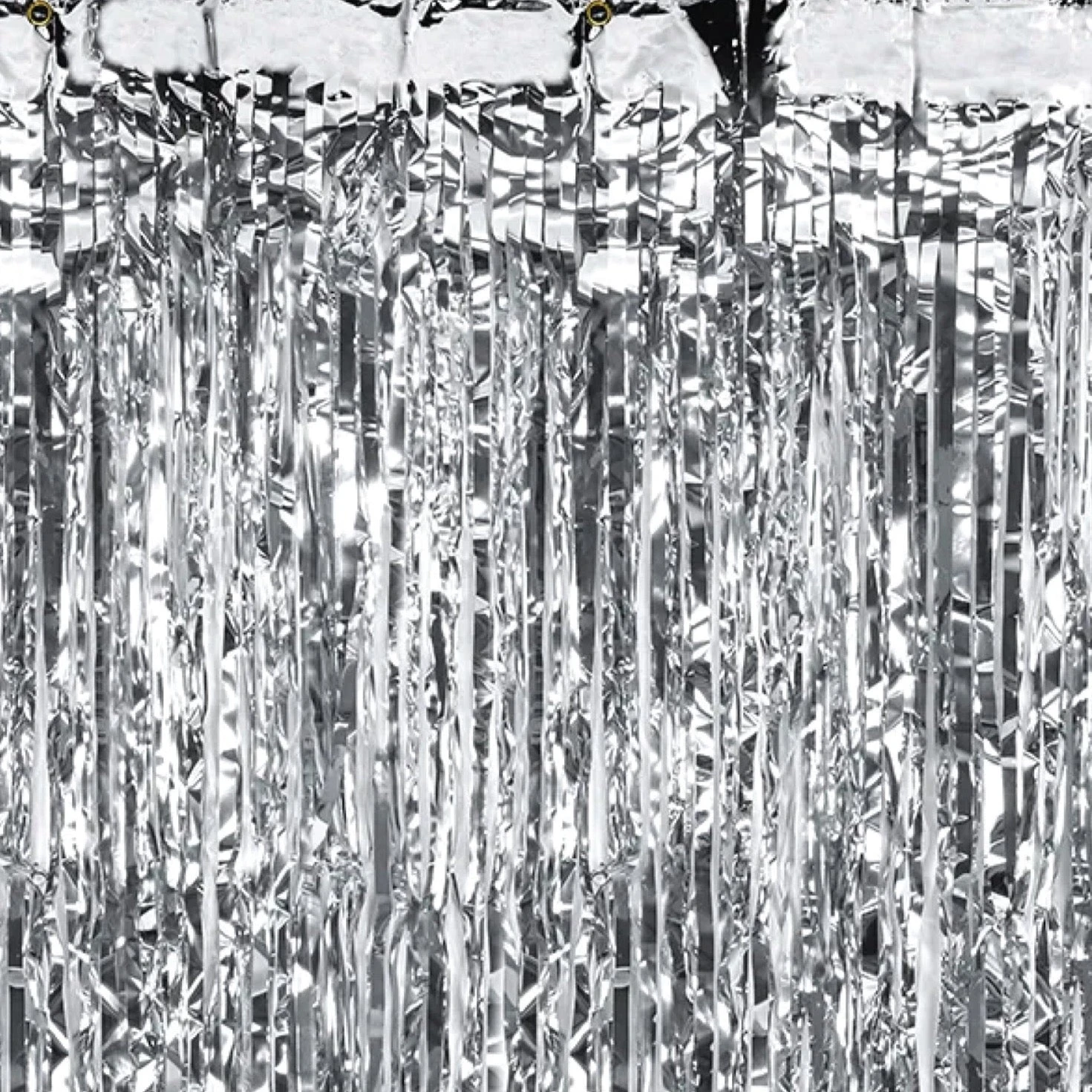 Design a show-stopping party backdrop with this Silver Fringe Curtain Backdrop. This shiny fringe curtain features long silver strands that can be trimmed to frame a window. Add it to the entryway door for guests to walk through or hang from the ceiling to add shimmering color and texture to a blank wall in your party room! Guests will love to take pictures in front of the photo backdrop. Mixing and matching this silver backdrop for an out of this world space party, New Year’s Eve celebration, or retro party theme!