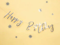 Decorate your child’s birthday party with a Silver Happy Birthday Letter Banner! The shiny cardstock banner features a “Happy Birthday” message in a script font. Hang up this banner as a central focal point of the room or use it as a photo booth backdrop to create lasting memories for your guests. Coordinate this birthday party sign to match any birthday party theme.Â