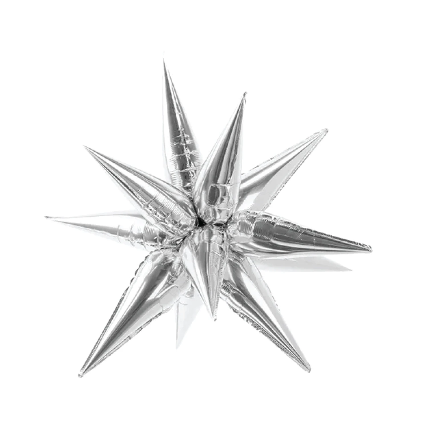 Show a burst of excitement at your party with a Silver Starburst Balloon! This silver foil balloon features individual spikes to create a 3D effect and comes with a straw to inflate it. Include starburst balloons in birthday balloon arches, columns, and photo backdrops, or hang them from the ceiling. Design the perfect party decoration with a magic star balloon for graduation parties, baby showers, Halloween parties, New Year’s Eve celebrations, weddings, and other special occasions.