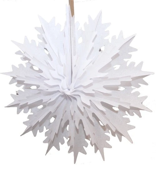 This Small White Tissue Paper Snowflake decoration gives you the beauty of winter without the chill! This small paper fan features a white snowflake cutout design and comes with an attached string for hanging. Create a winter wonderland with this beautiful hanging decoration in your schools, classrooms, venues, or anywhere you want to create a winter party event. For example, hang this paper fan in your photo booth backdrop at your child’s Frozen birthday party or your holiday Christmas party. Pair this fan with our 19-inch and 22-inch snowflakes to create a festive winter scene.
