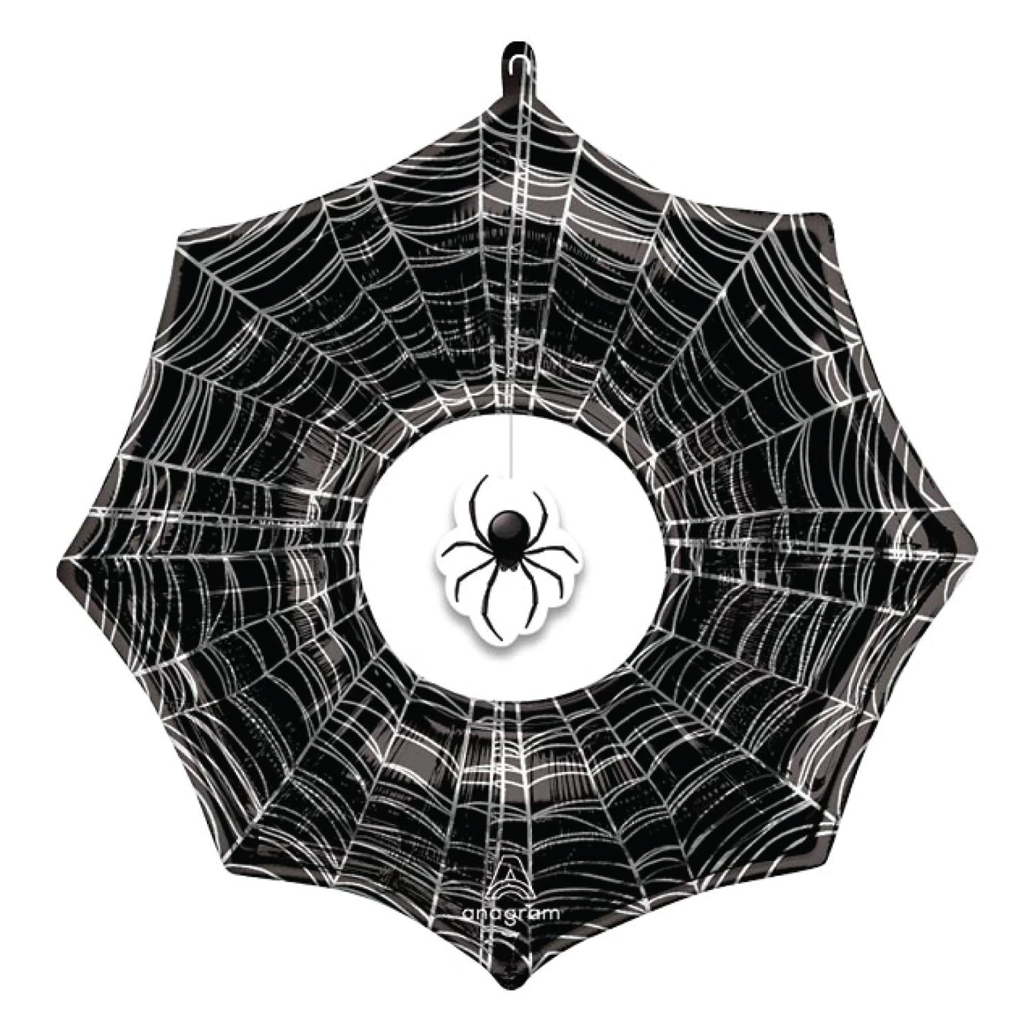 Hang this Spiderweb & Creepy Dangling Spider Foil Balloon from the ceiling at your kid’s Halloween party! Not all eight-legged creatures are scary. This giant foil balloon features a hollow center with a black spider hanging inside. Create your own spiderweb or balloon bouquet with this balloon by adding solid-colored latex balloons (sold separately) or tie it alone to a centerpiece or chair. Whether you’re throwing a classroom Halloween party, a kid’s Halloween birthday party, or getting ready for trick-or-treaters, this black spider balloon is a cute addition to your Halloween decorations.