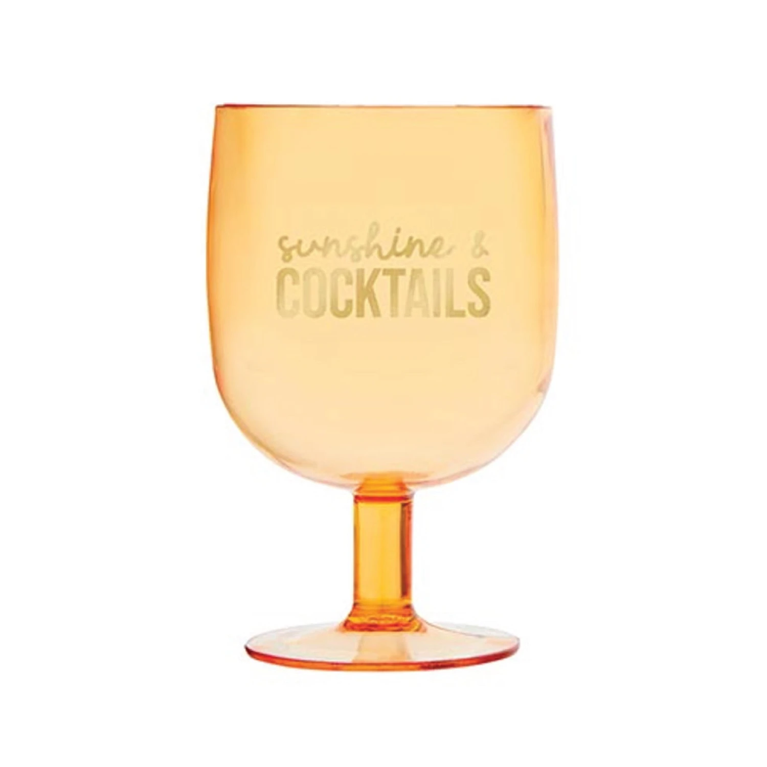 Savor the sweet taste of summer with these Sunshine & Cocktails Acrylic Wine Glasses! These plastic wine glasses radiate warmth with their vibrant orange transparent tint, complemented by a gold foil “sunshine & cocktails” headline. Whether lounging by the pool or soaking up the sun at the beach, these reusable cups are ideal for enjoying your favorite cocktails or refreshing drinks. Bring them along to a last splash bachelorette party, a pool party birthday bash, or any beachside celebration, and let the sunshine and cocktails flow!