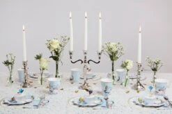 Set the table with these Alice in Wonderland Paper Cups before your splendid guests arrive! The drinks cups feature the original book illustrations of Alice, the Rabbit, a teacup, surrounded by cards on a light blue background. A quote from the book like “We’re all mad here” adds to the whimsical look. Set a stack of these party cups on the drink table so guests can grab their favorite beverage. Pair these cups with the coordinating plates and napkins for an elegant Alice in Wonderland birthday party.