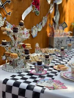 What better way to clear your mess away than with these Alice in Wonderland Cocktail Napkins. These small paper napkins feature two charming designs, including The White Rabbit and Alice, adorned by a vibrant floral border. Each dessert napkin features the original book illustrations and quotes like “Oh my ears and whiskers,” which add a whimsical look at your mad hatter party. These thick napkins are a match made in heaven for all those mucky little hands during afternoon tea. Set a stack of these small cocktail napkins on the drink table so guests can grab with their favorite beverage or clean up small spills. Pair these elegant napkins with the coordinating plates and teacups for your child’s Alice in Wonderland birthday party.
