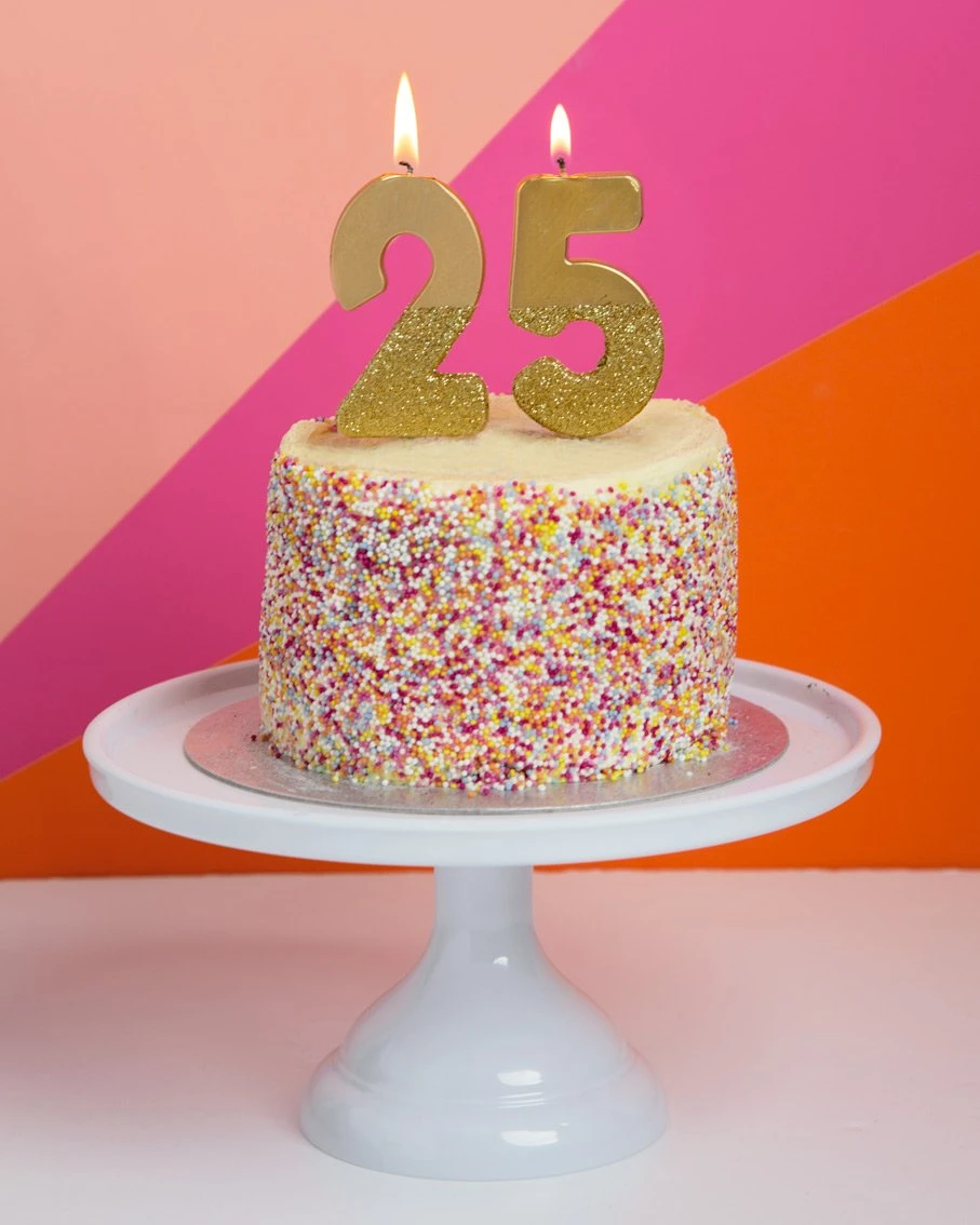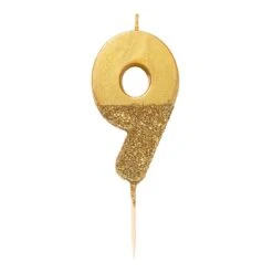 Add a shiny touch to your birthday cake with this eye-catching Gold Glitter Dipped Number Birthday Candle! The gold number features a modern design, and the bottom half is dipped in darker gold metallic glitter. Pair these number cake toppers together to create a custom cake for a sweet 16 birthday, 21st birthday party, or anniversary cake. Top your cake with these beautiful number candles for a festive addition to any cake, whether you’re celebrating a gold-themed birthday or anniversary.
