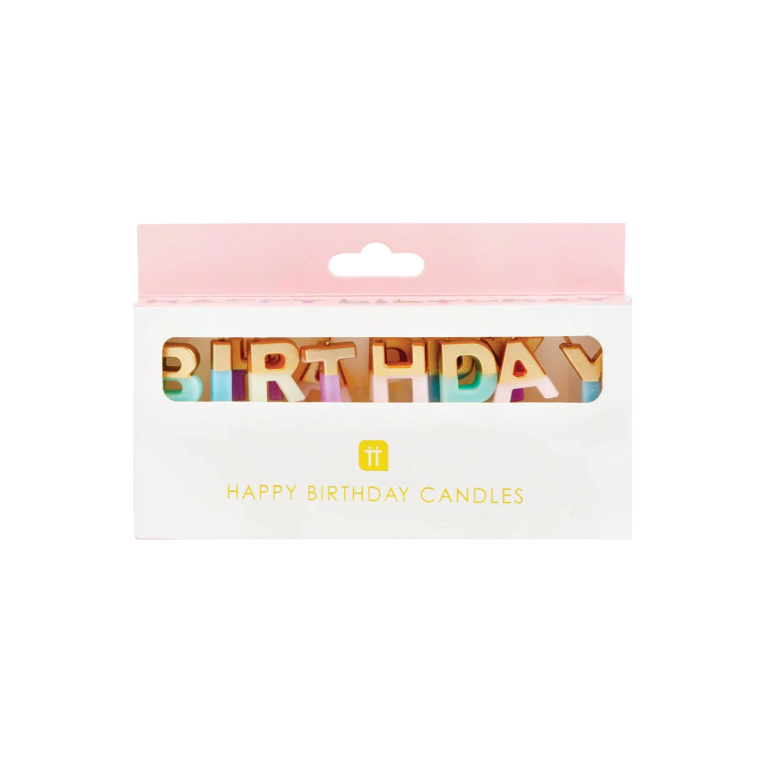 Add a special touch to their cake with Multicolor Pastel & Gold Happy Birthday Candle Set. These 13 party candles spell out “Happy Birthday” in gold letters half dipped in various pastel colors. Each letter candle is mounted on a plastic pick. You will have a fantastic cake with these cake toppers. These birthday candles are a perfect addition to a pastel birthday party for people of all ages! Bring out the cake topped with these birthday candles and watch the birthday boy or girl’s face light up.