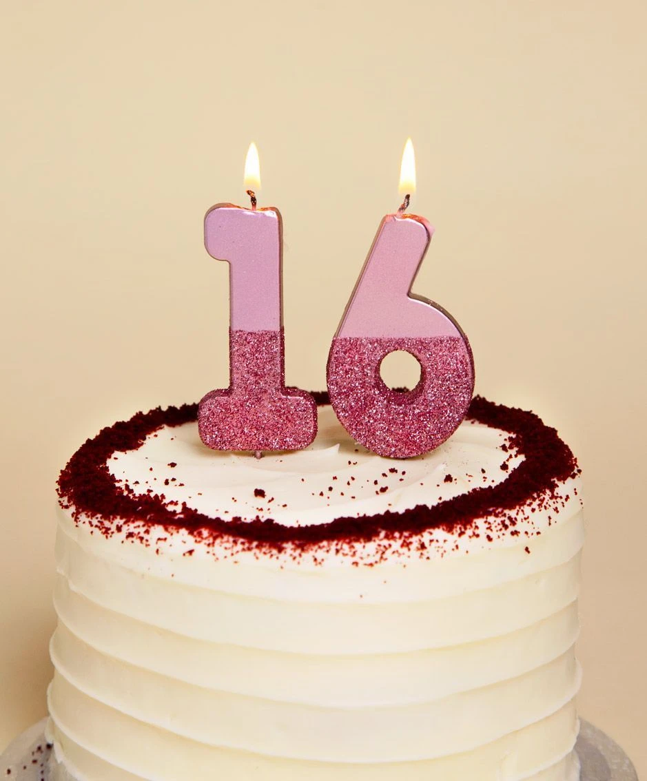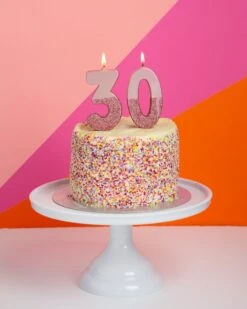 Add a shimmering touch to their birthday cake with this eye-catching Rose Gold and Gold Glitter Dipped Number Birthday Candle! The rose gold number features a modern design, and the bottom half is dipped in darker rose gold metallic glitter. Pair these number cake toppers together to create a custom cake for a sweet 16 birthday, 21st birthday party, or anniversary cake. Top your cake with these beautiful number candles for a festive addition to any cake, whether you’re celebrating a rose gold-themed birthday or anniversary.