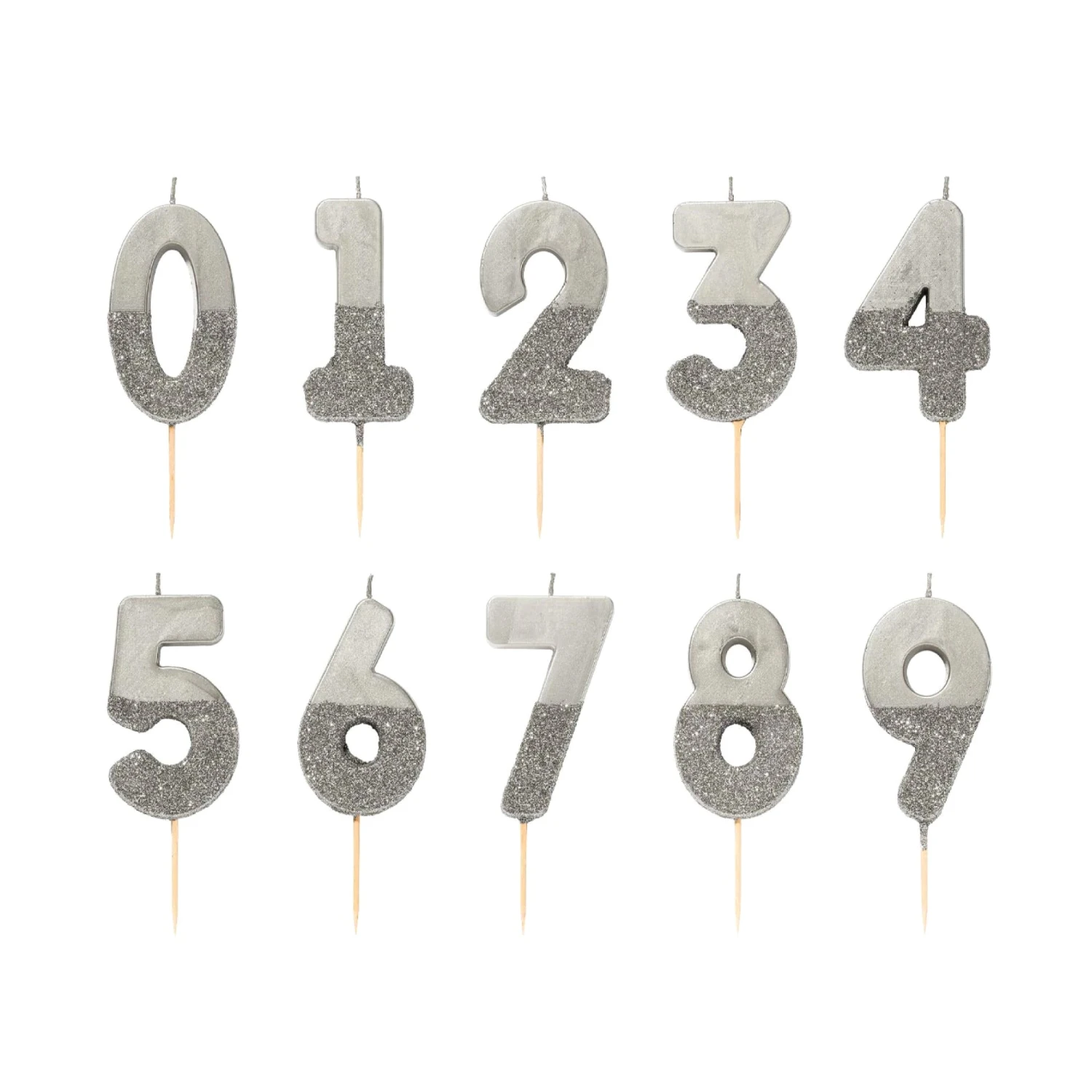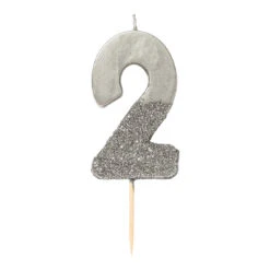 Add a shiny touch to your birthday cake with this eye-catching Silver Glitter Dipped Number Birthday Candle! The silver number features a modern design, and the bottom half is dipped in silver metallic glitter. Pair these number cake toppers together to create a custom cake for a sweet 16 birthday, 21st birthday party, or anniversary cake. Top your cake with these beautiful number candles for a festive addition to any cake, whether you’re celebrating a silver-themed birthday or anniversary.