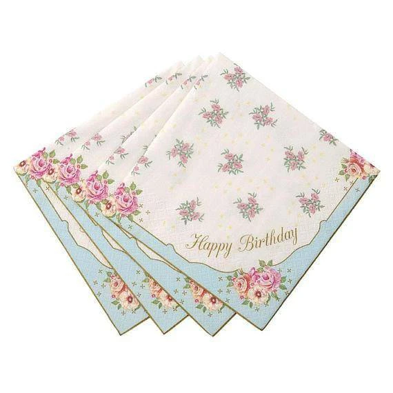 Celebrate in style with our Vintage Floral Happy Birthday Napkins! These beautiful pastel blue and pink napkins feature a vintage floral design with “Happy Birthday” printed on them. Perfect for any birthday celebration, these napkins will add a touch of elegance and fun to your party.