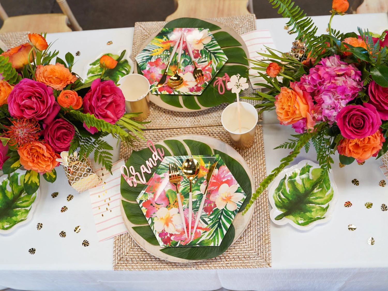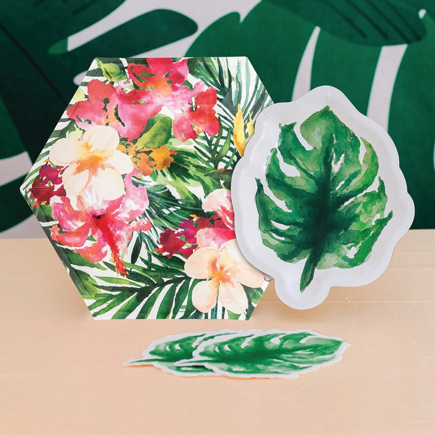 Set a fancy table with these Tropical Leaf Dessert Plates! These dessert plates feature a green monstera tropical leaf shape on a white background. They are perfect for all kinds of entertaining. A nice way to add an elegant decorative touch to wedding gatherings like a tropical-themed bridal shower, bachelorette party, reception, or other events like birthday parties, graduation celebrations, and anniversaries. Perfect for a luau, jungle, safari party, or any other fun tropical theme. Pair these dessert plates with any of our other tropical party items.