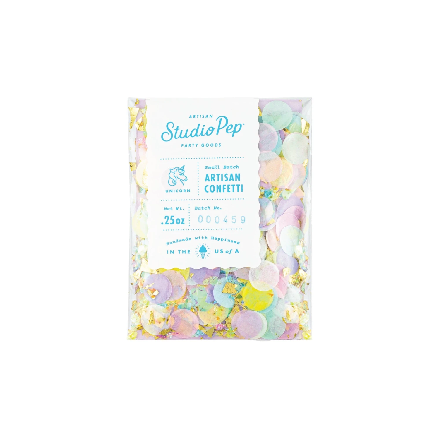 You still believe in unicorns right?! Complete your table decoration with this Unicorn Confetti Mini Pack. This package of confetti features pastel-colored tissue circles and metallic gold shreds. These unicorn confetti colors are pretty magical and ready for you to toss at your unicorn party! It’s the perfect amount for sprinkling on party tables or tucking in invitations.