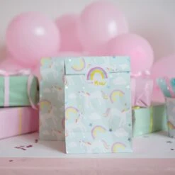 Fill these Unicorn Treat Bags with Stickers with your favorite tasty treats or party favors. Printed with a fun unicorn pattern and accented with clouds, rainbows, iridescent foil stars, each package contains 8 bags along with stickers. Use the stickers to write the names of your party guests at your unicorn birthday party.